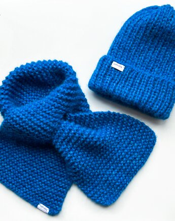 Czapka DARLA - kobaltowa / niebieska - Handmade - Merino, alpaka, jedwab