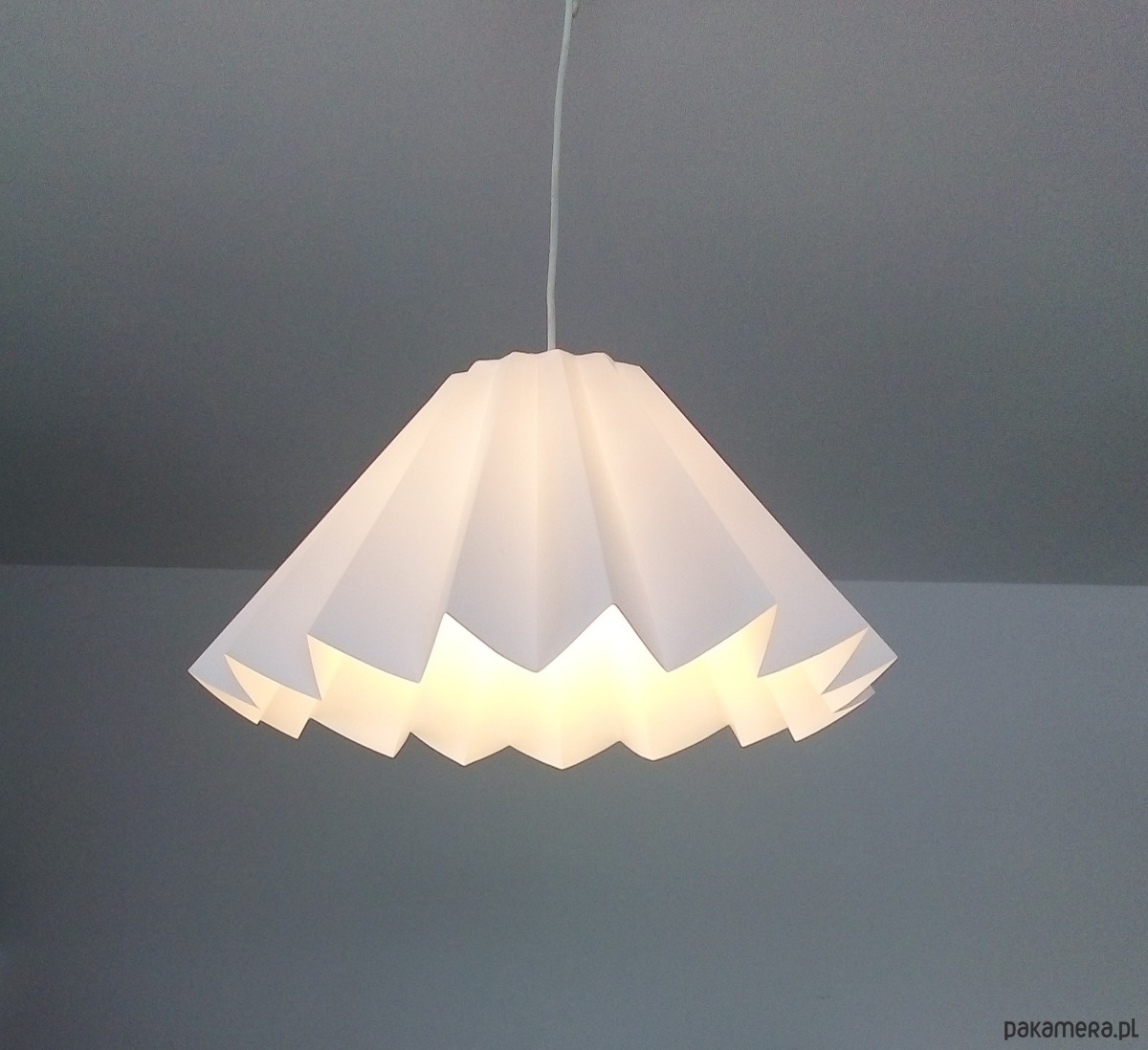 Lampa nawiązująca do tradycyjnych lamp plisowanych o charakterze dekoracyjnym.