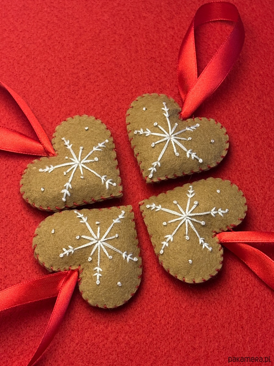Zawieszka choinkowa w kształcie serca przypominająca pierniczki