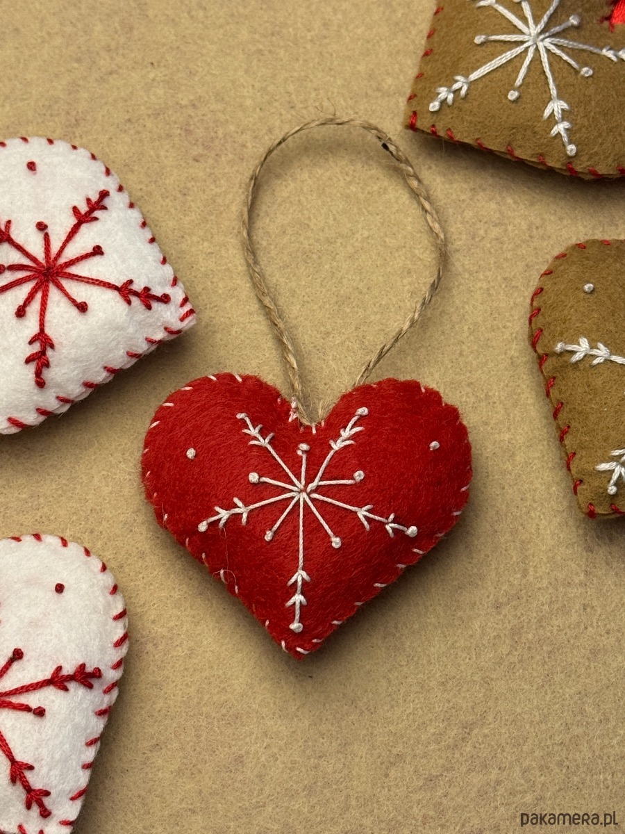 Zawieszka wykonana jest z lekkiego filcu wypełnionego poliestrową watą. Waga zawieszki nie obciążą gałązek choinki