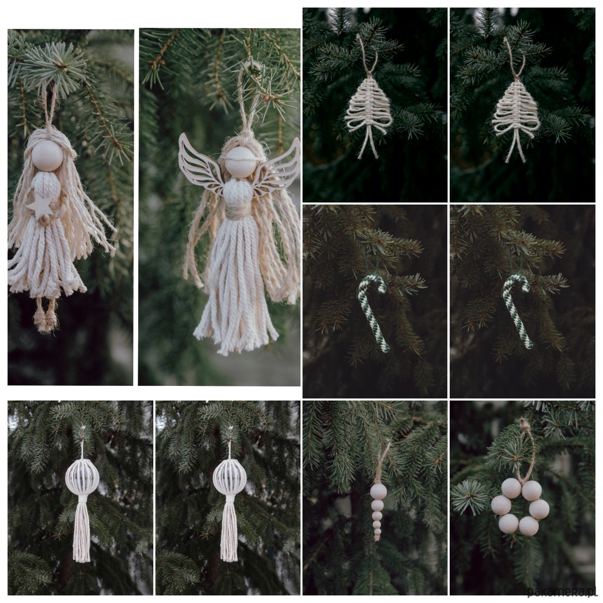 10 ozdób na choinkę.. Kolor naturalny.. Sznurek bawełniany i juta
