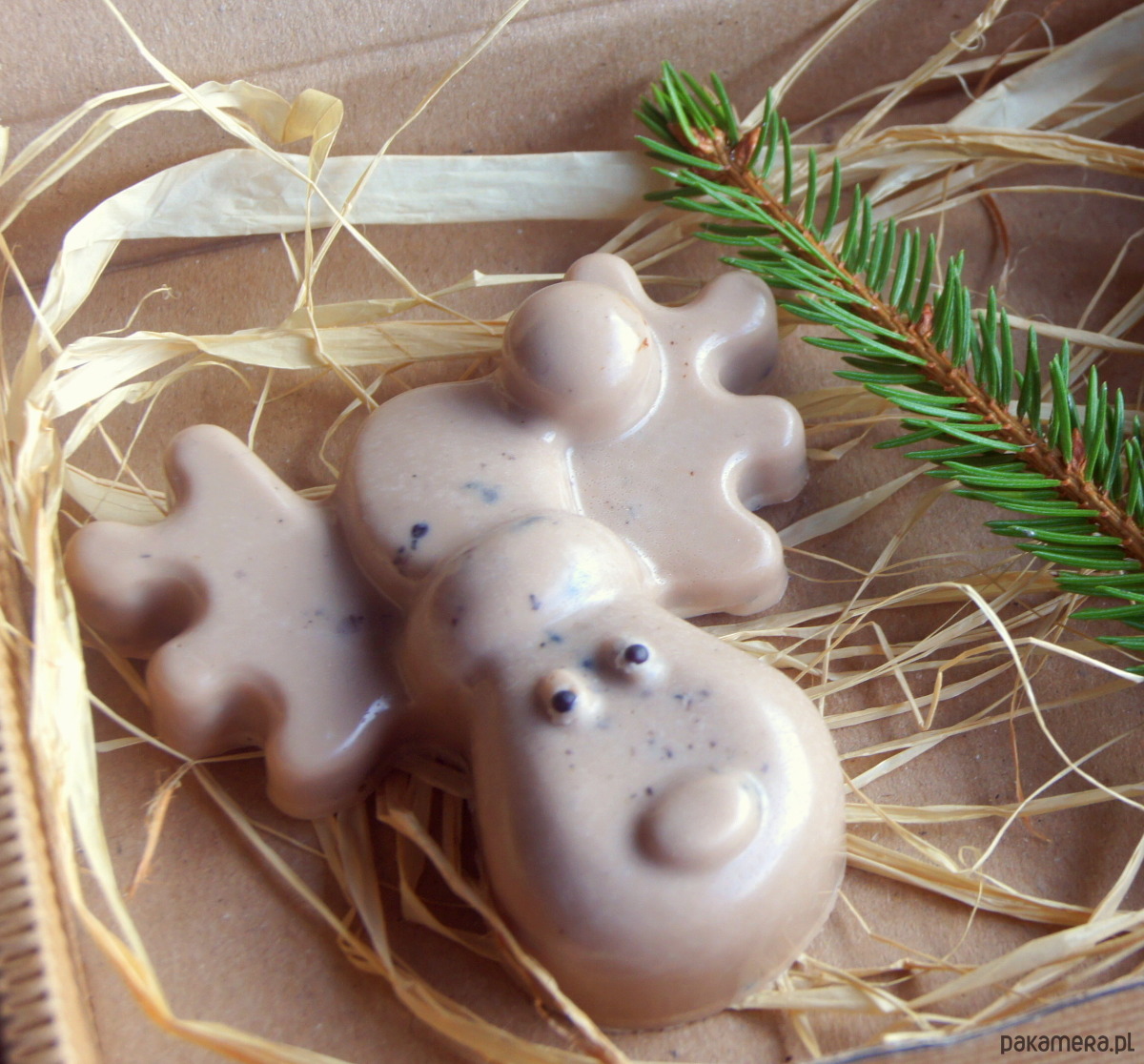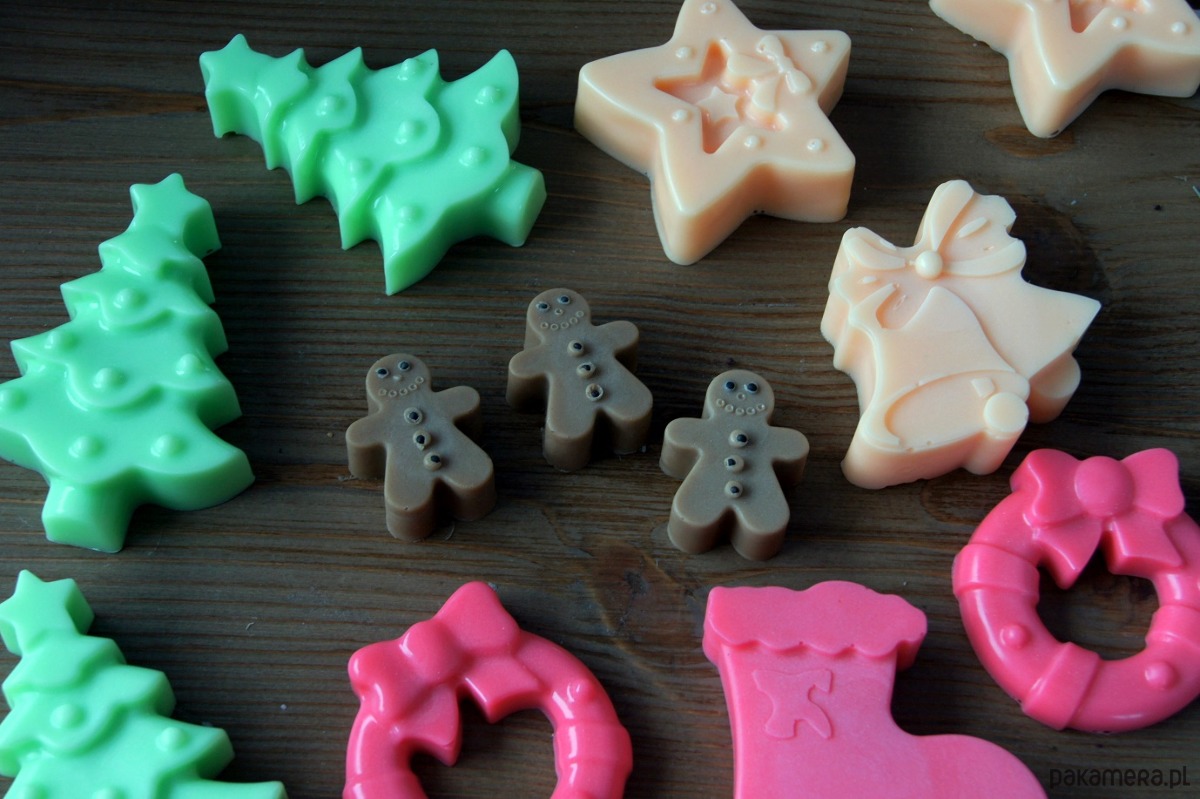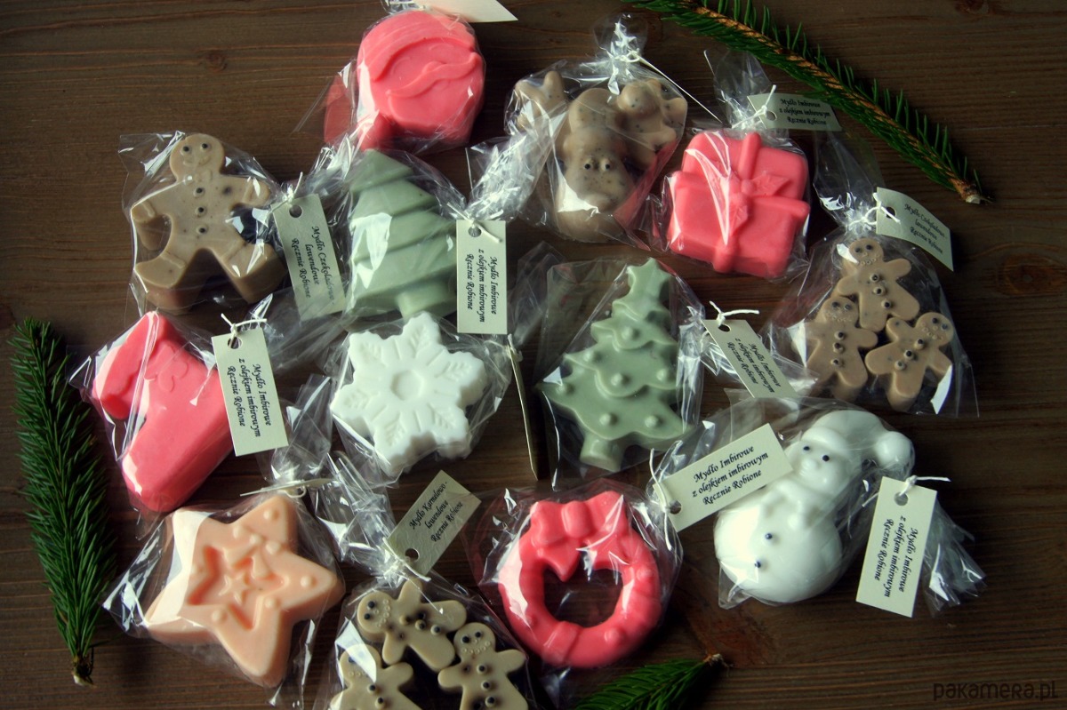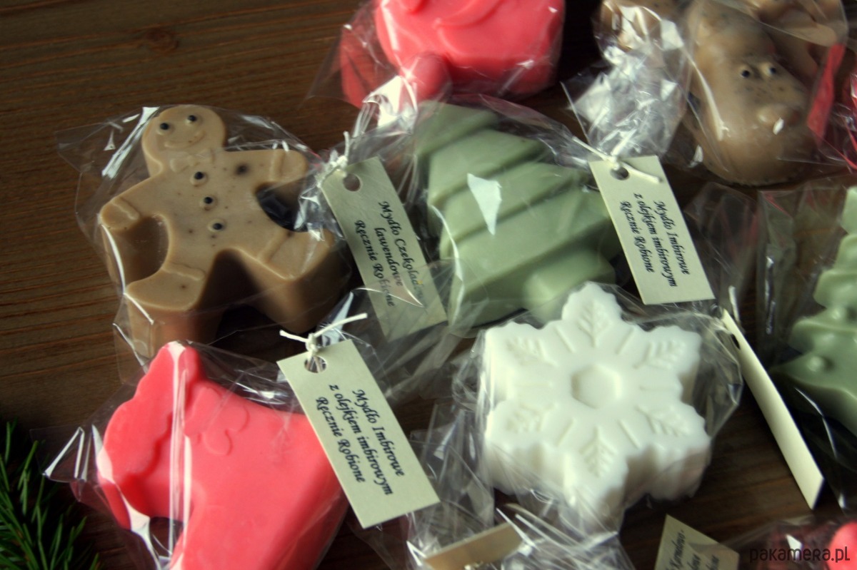 Chcesz komuś podziękować? Dać bliskim co wyjątkowego? Podaruj im coś ręcznie robionego i pachnącego świętami. Zestaw 10 dekoracyjnych mydełek zapachowych w świątecznych kształtach,w 3 zapachach: imbiru, czekolady,mięty. Wszystkie mydełka ważą 50g (+/-5g) wyjątkiem jest wieniec który waży 25g. W każdym zestawie 10 sztuk żaden wzór się nie powtarza. Mydełka zawierają masło shea i olejek imbirowy, renifery, ludzik i małe ludziki zawierają masło kakaowe i obłędnie pachną czekoladą, choinki wspaniale pachną olejkiem z mięty pieprzowej. Dowolną dedykację/życzenia na zawieszkach drukujemy bez opłat w celu spersonalizowania zamówienia ( może to być również logo firmy z napisem ).