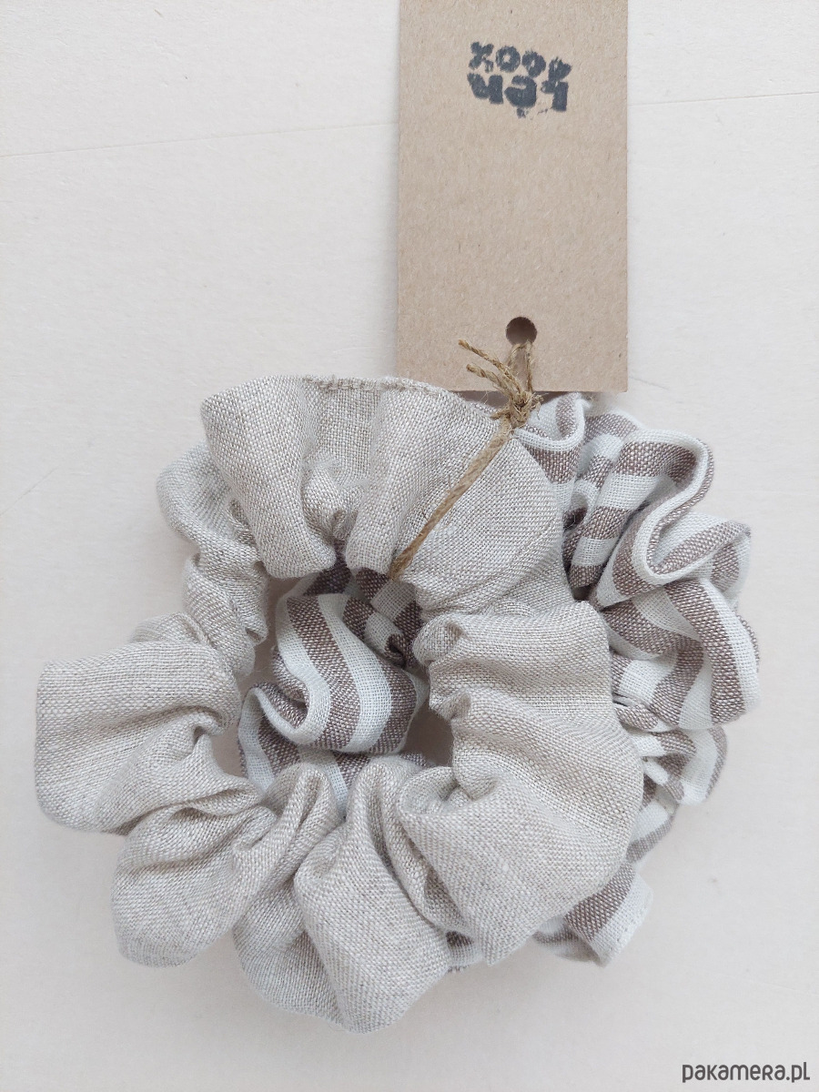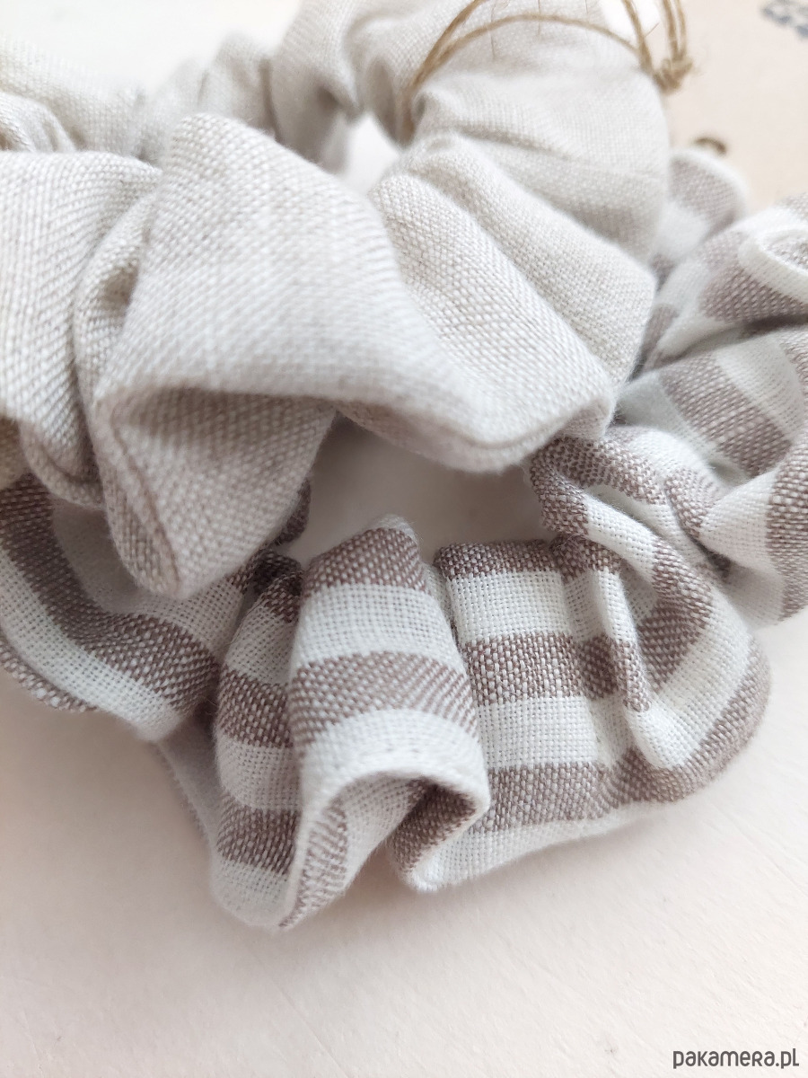 Lniane gumki do włosów typu scrunchie, zestaw - 2 sztuki, 100% len, unikatowe.