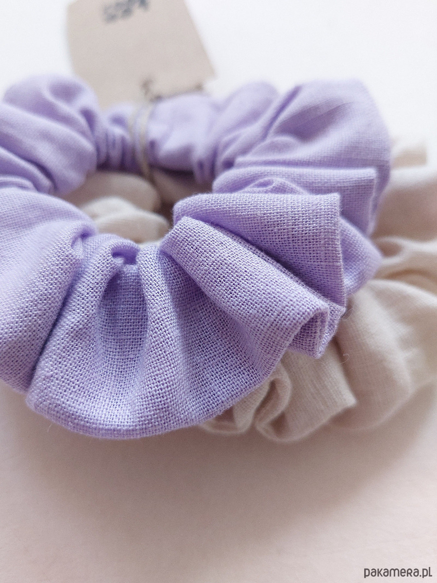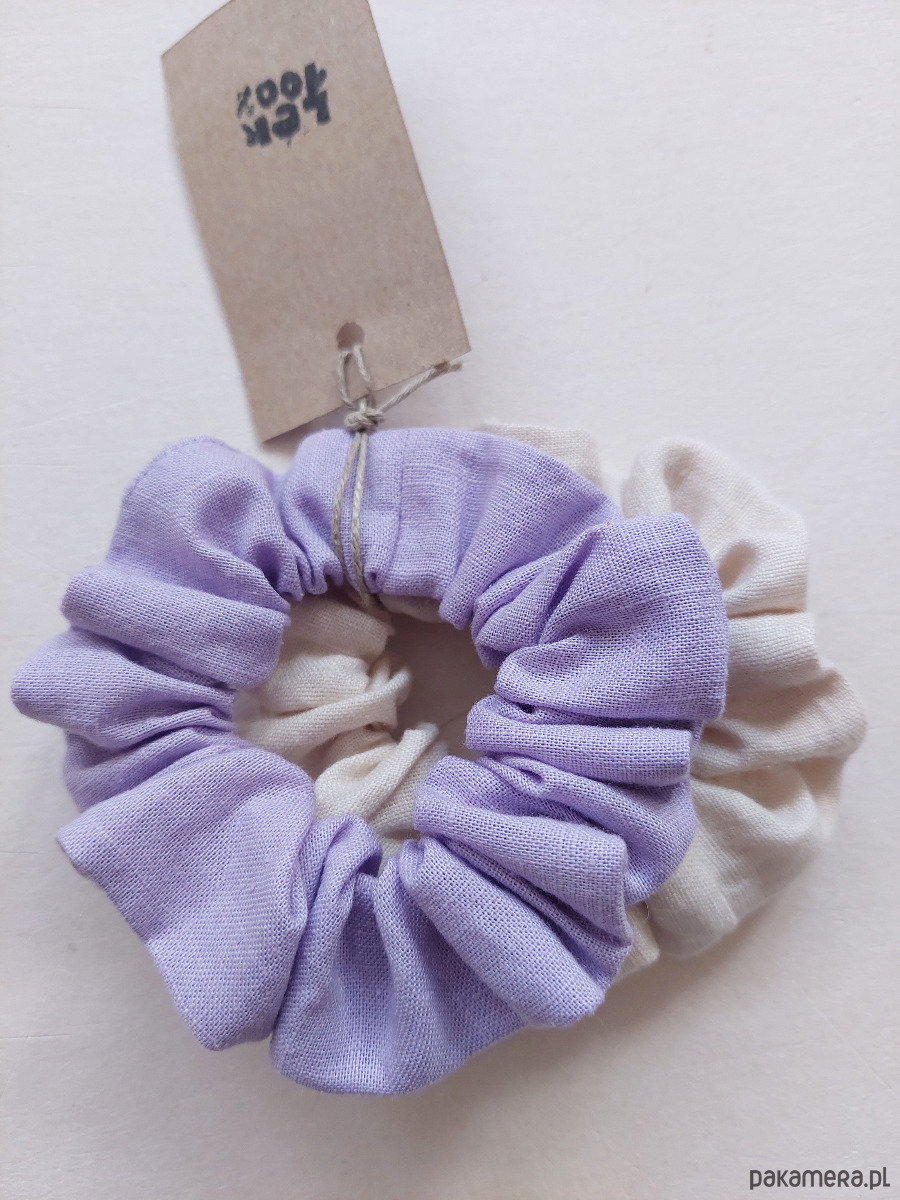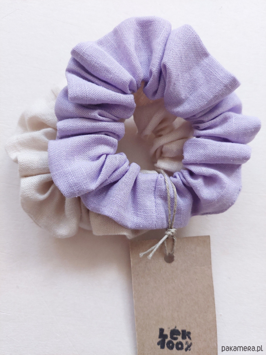 Zestaw - 2 x gumka do włosów typu scrunchie, wykonane w duchu zero waste, bezstratnie dla małych kawałków lnianych tkanin.