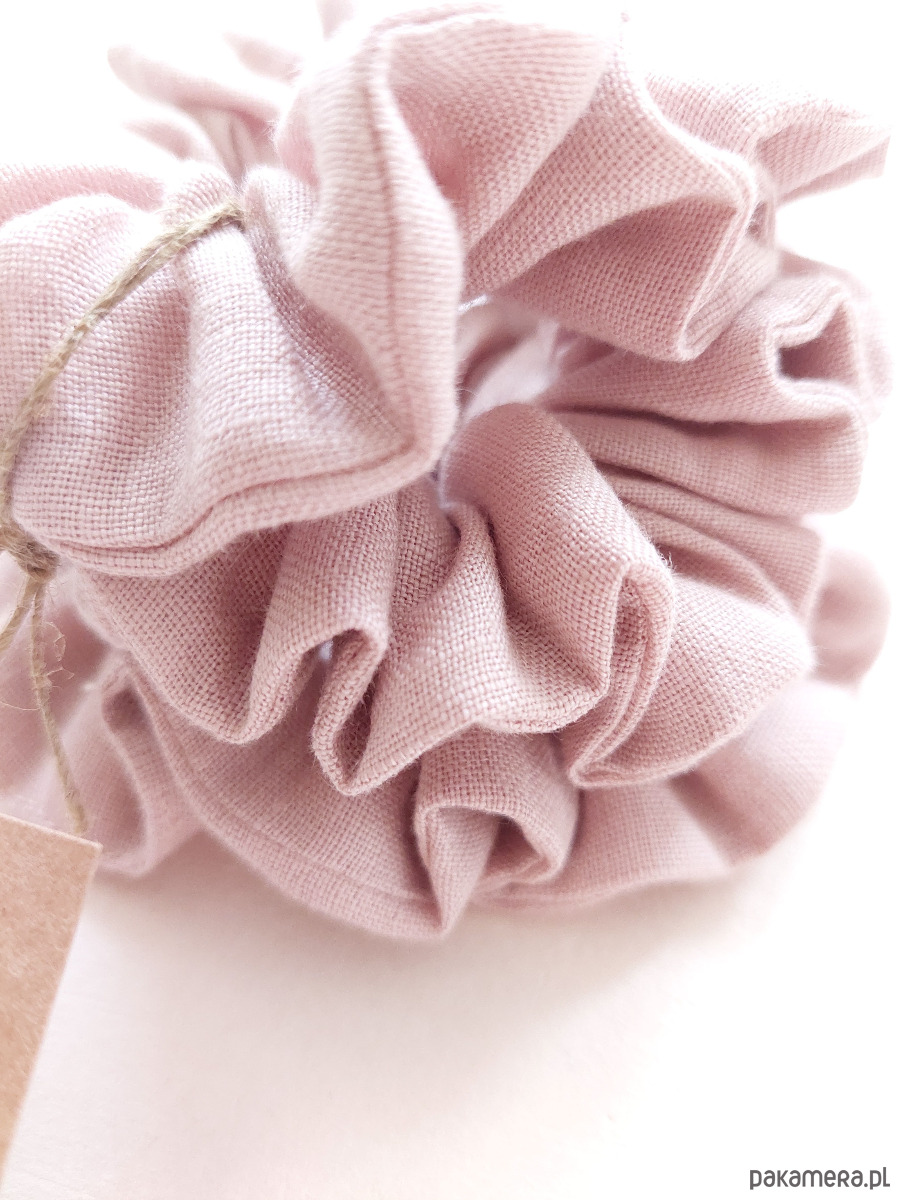 Zestaw - 3 x gumka do włosów typu scrunchie, wykonane w duchu zero waste, bezstratnie dla małych kawałków lnianych tkanin.