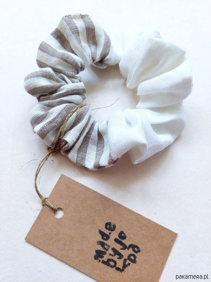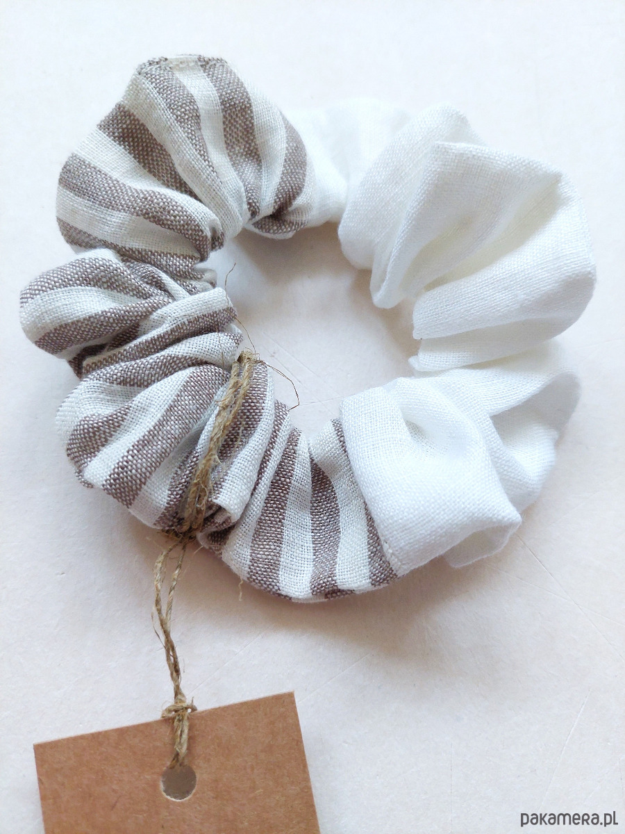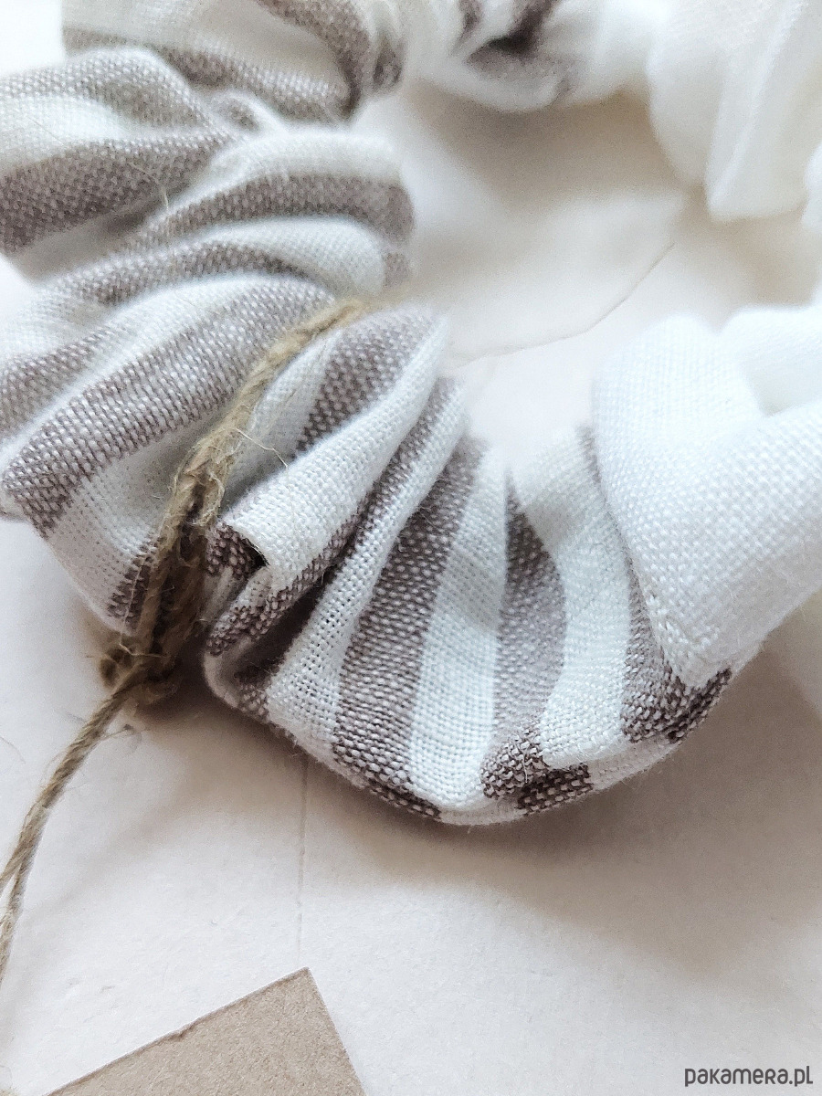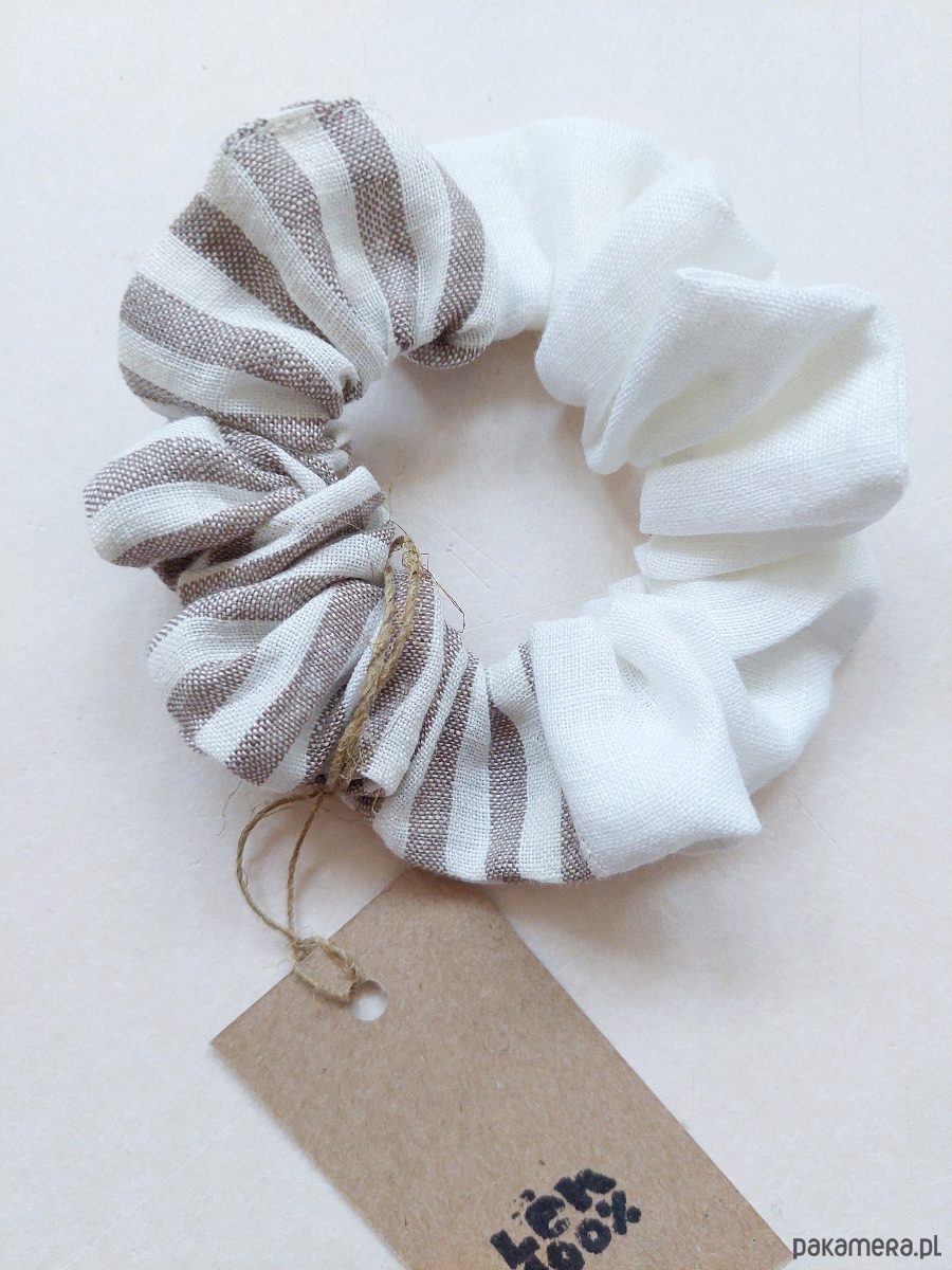 Lniana gumka do włosów / scrunchie, unikatowa, uszyta w duchu zero waste.