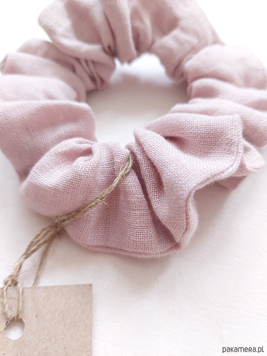 Lniana gumka do włosów / scrunchie, unikatowa, uszyta w duchu zero waste.