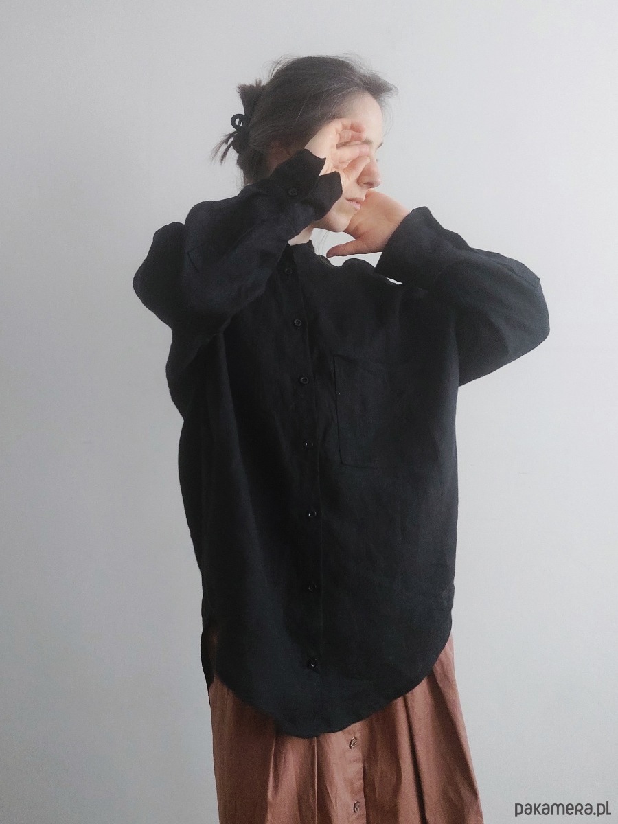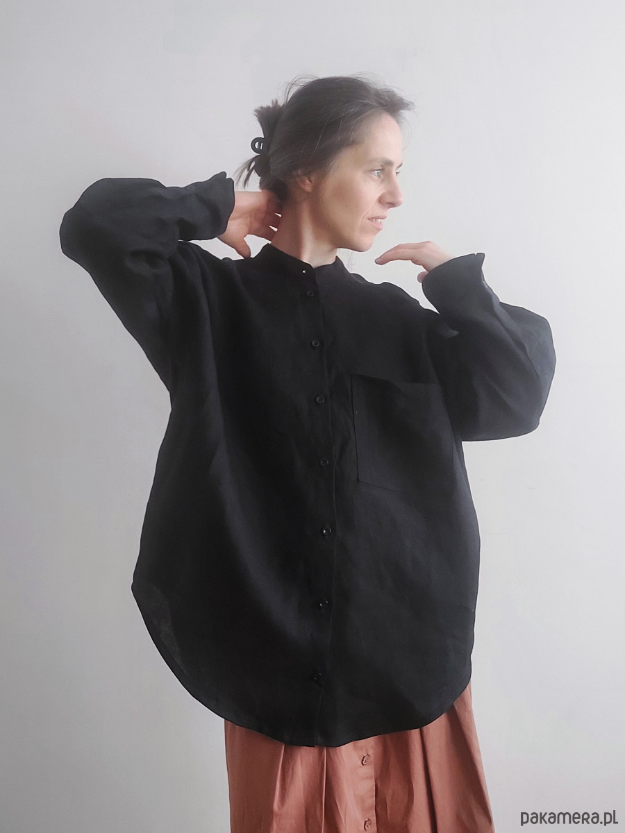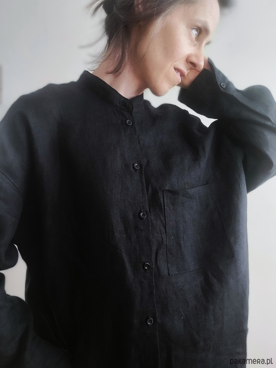 Lniana koszula typu oversize, zaprojektowana i uszyta w Polsce przez madebyjokpa.