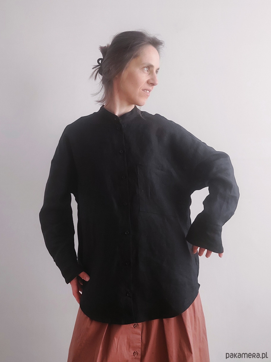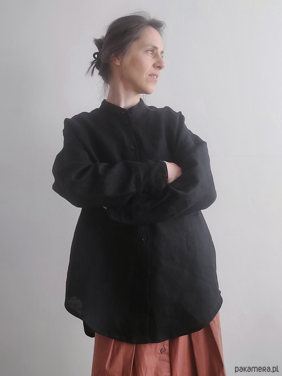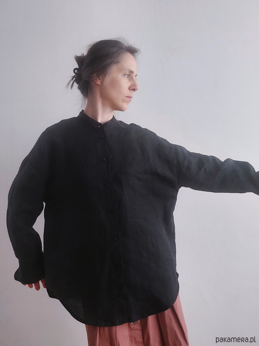 Lniana koszula typu oversize, zaprojektowana i uszyta w Polsce przez madebyjokpa.
