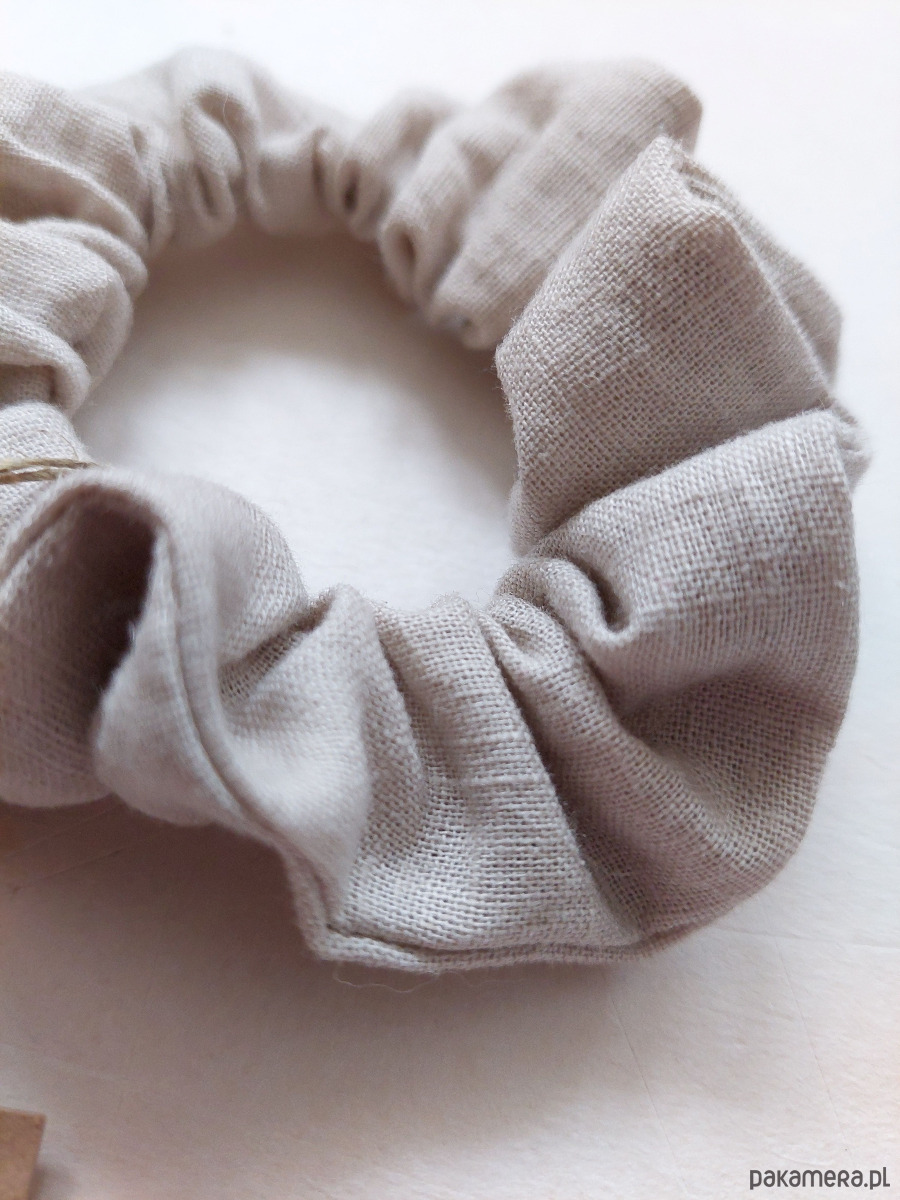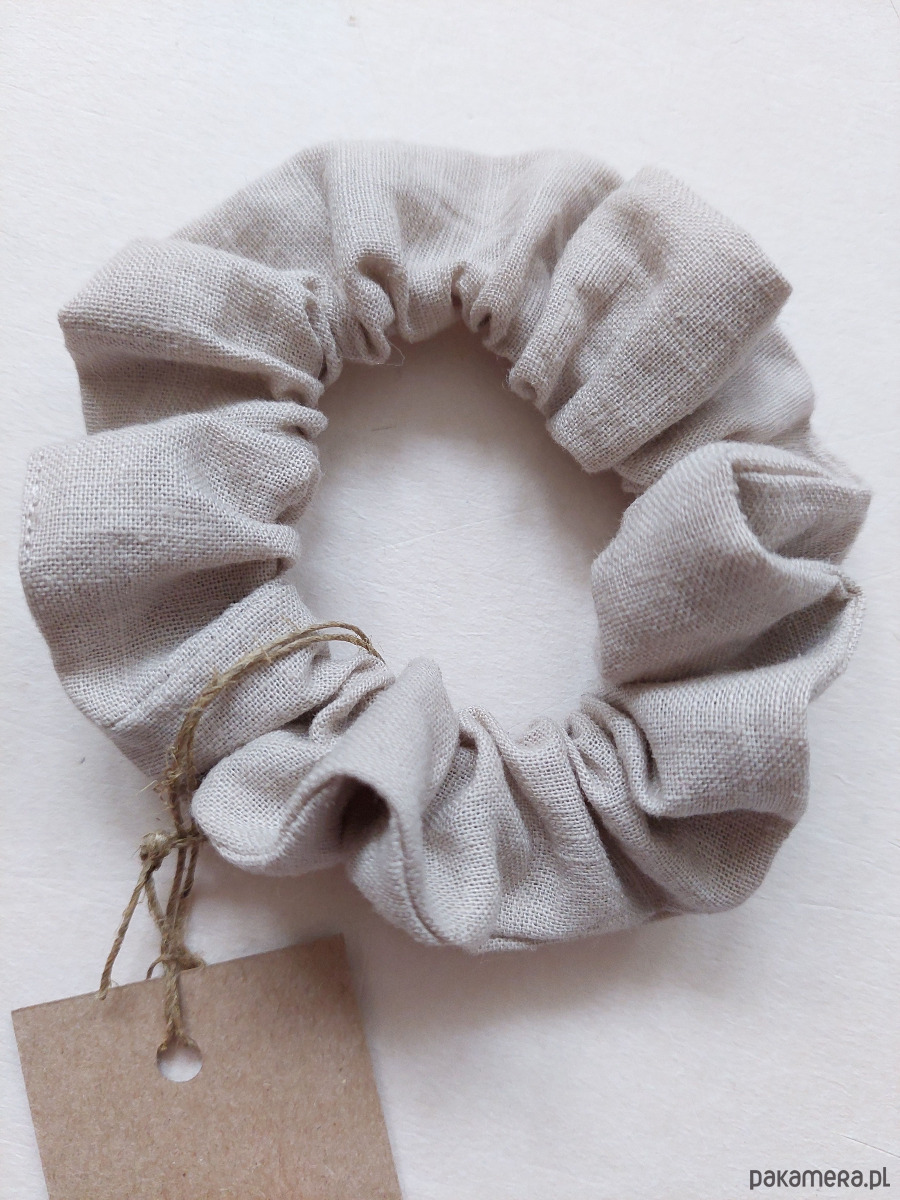 Lniana owijka do włosów / scrunchie, unikatowa, uszyta w duchu zero waste.