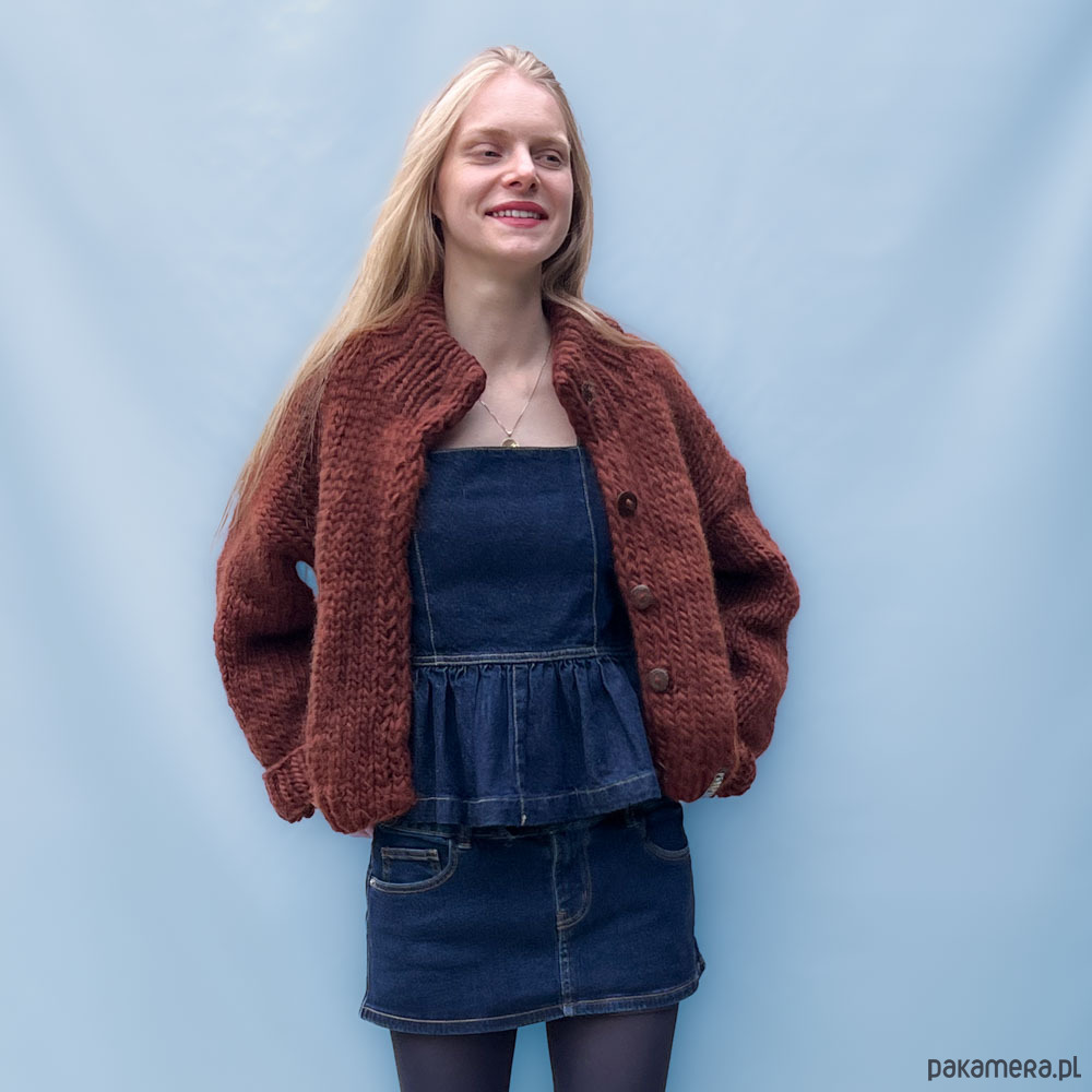 Nasz krótki kolorowy kardigan oversize jest idealny na sezon przejściowy.