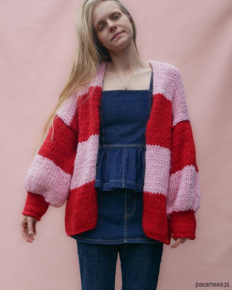 Nasz krótki kolorowy kardigan oversize jest idealny na sezon przejściowy.