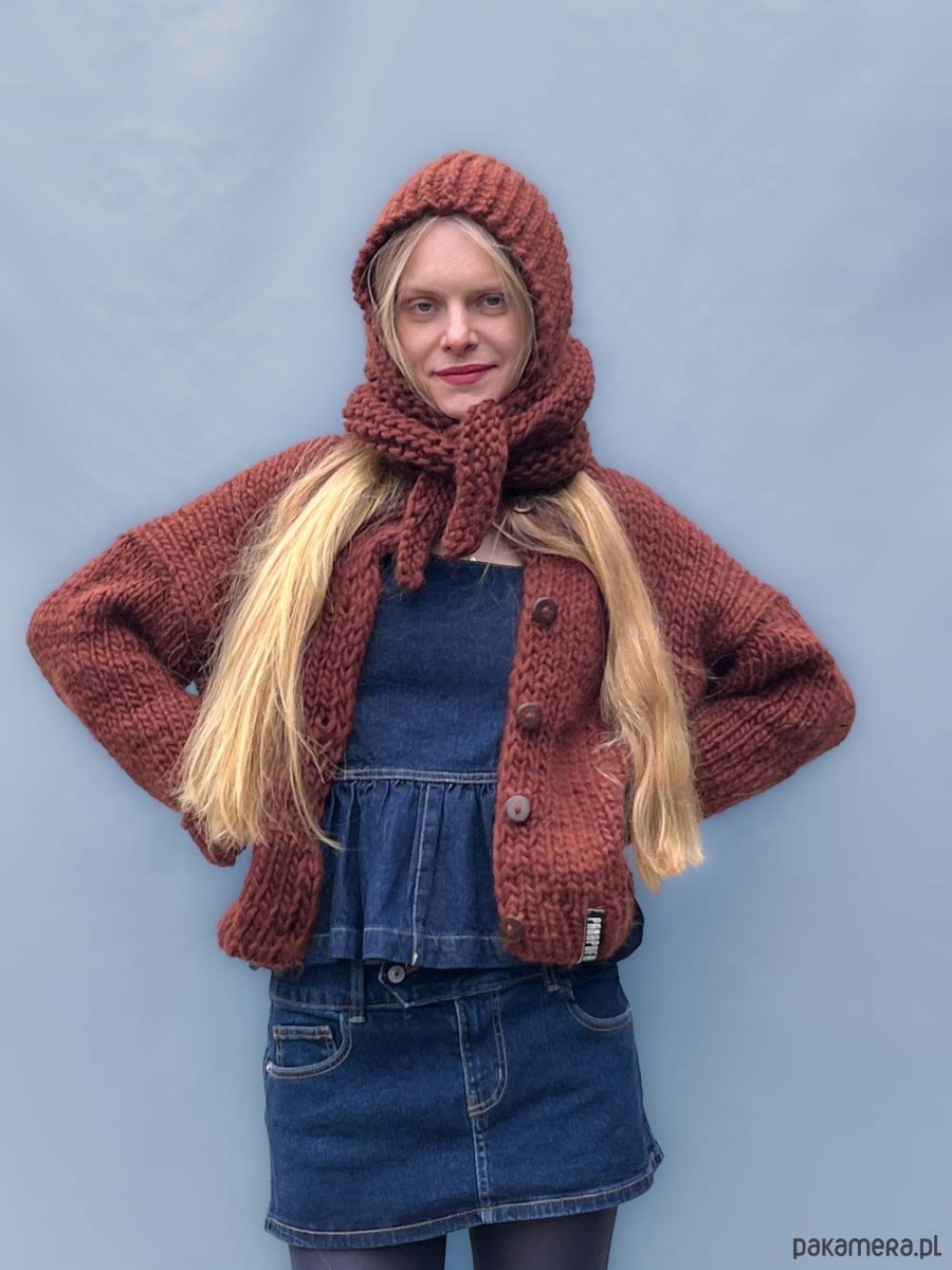 Super modny szaliko kaptur w super grubym splocie wykonana została na grubych drutach z organicznej wełny