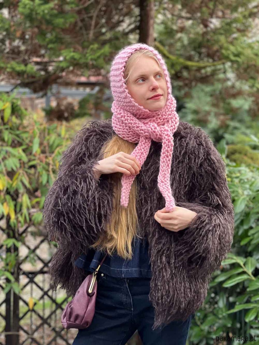 Super modny szaliko kaptur w super grubym splocie wykonana została na grubych drutach z organicznej wełny