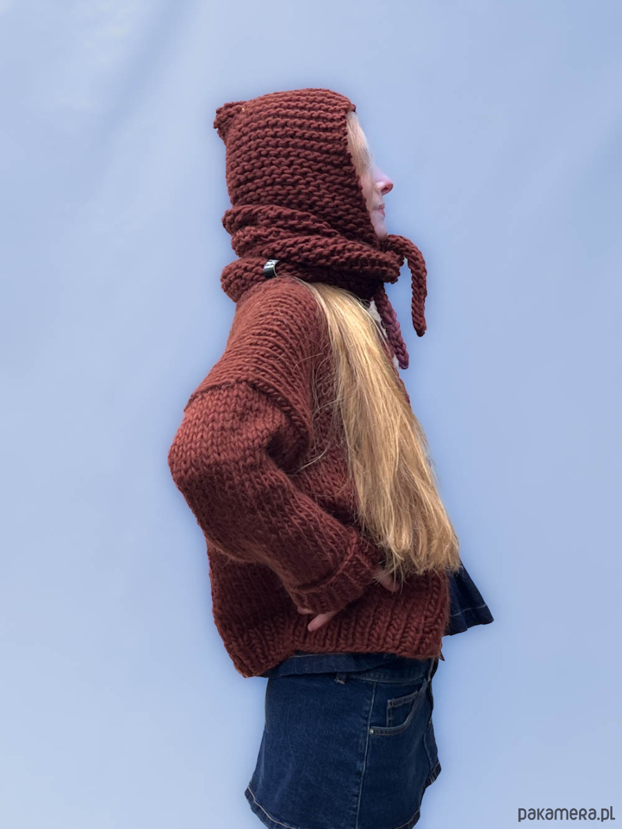 Super modny szaliko kaptur w super grubym splocie wykonana została na grubych drutach z organicznej wełny