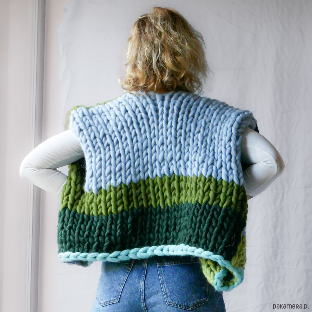 Unikatowa kamizelka wykonana na drutach w grubym splocie z 100% wełny.