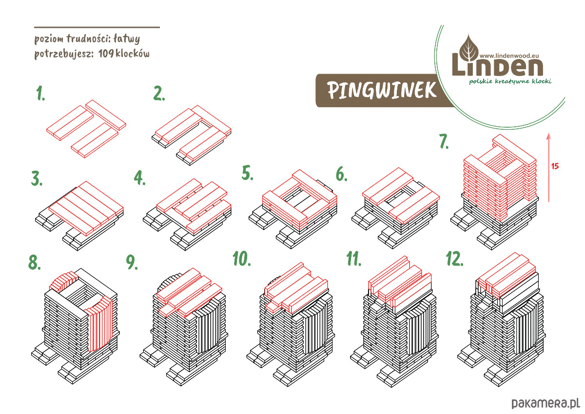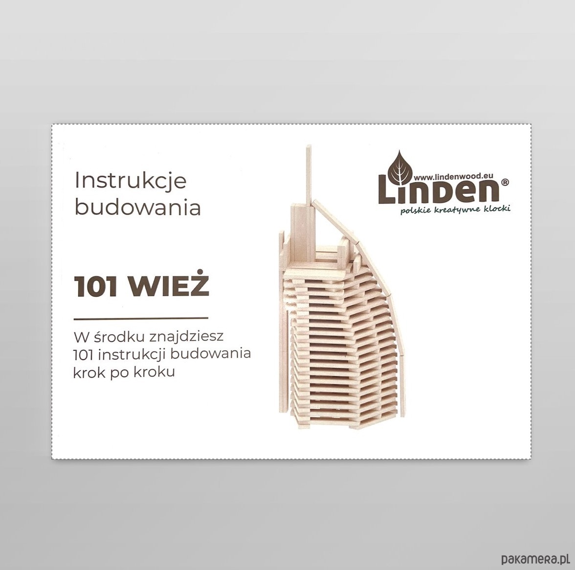 Książka z instrukcjami budowania z drewnianych klocków Linden: