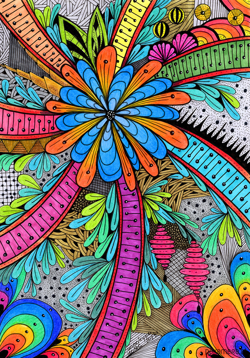 Pop Surrealism (Surrealizm Popowy), Doodle Art/Zentangle Inspired, Ilustracja Ekspresyjna, Grafika Neonowa, Sztuka Wibracyjna
