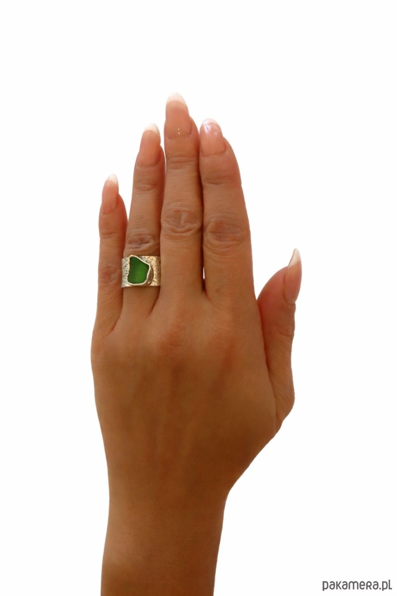 Ręcznie wykonana ze srebra młotkowane 925 jedyna w swoim rodzaju ze szkłem morskim 💚 róż 12-13 bardzo polecam