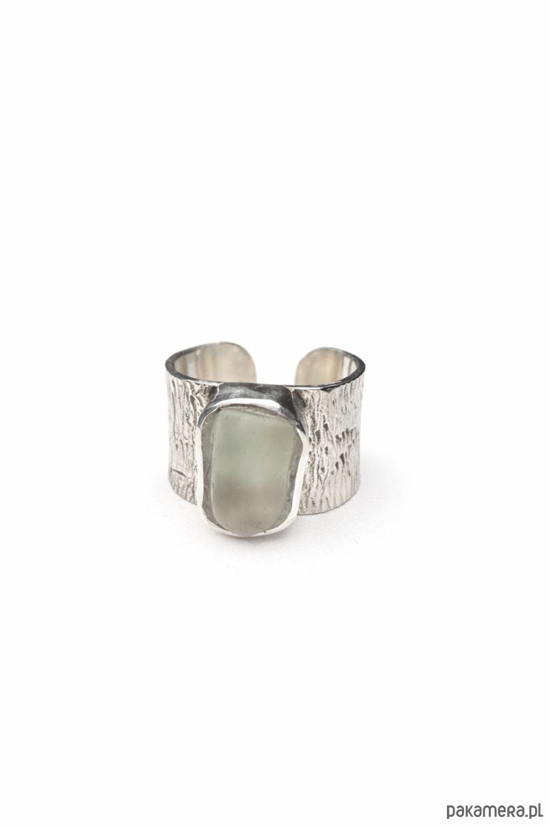 1,1cm Obrączka młotkowana ręcznie robiona ze szkłem morskim