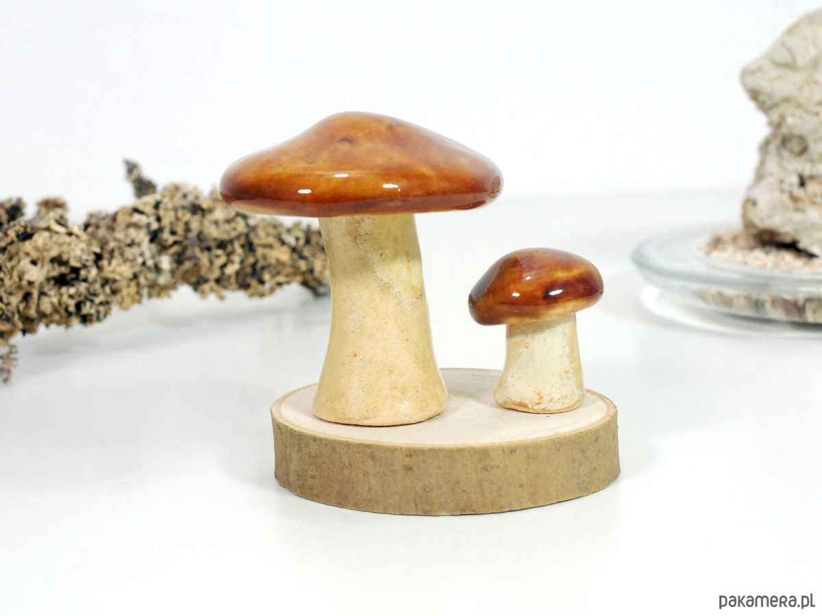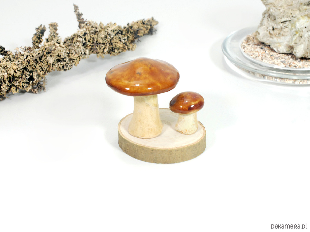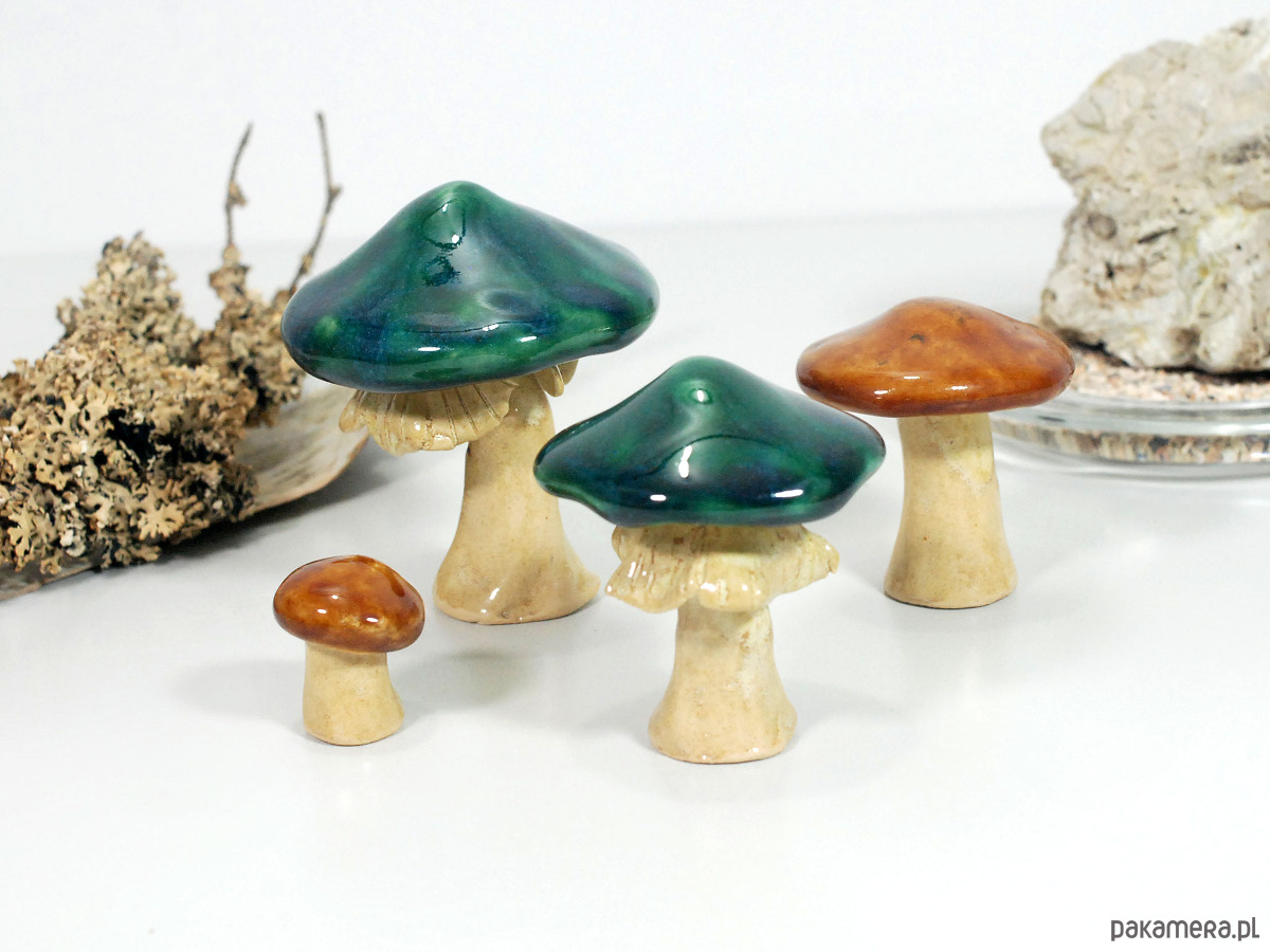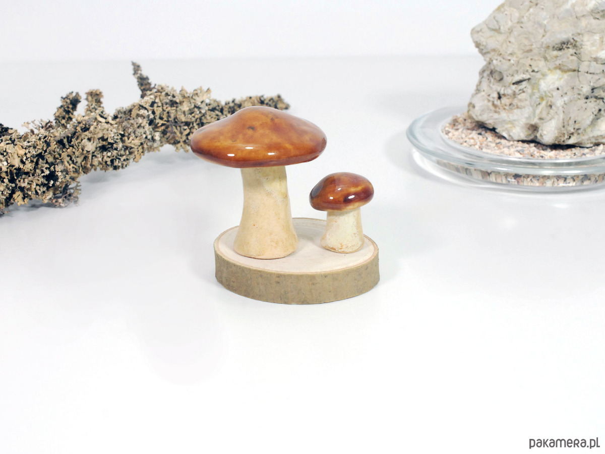 Każdy grzybek jest ręcznie formowany i szkliwiony. Idealny jako dekoracja stołu, akcent na komodzie lub półce, albo jako subtelny element „mini lasu” we wnętrzu twoich ulubionych roślin. Doskonały pomysł na prezent dla miłośników ręcznie wykonanych dekoracji oraz osób, które chcą wprowadzić odrobinę leśnego klimatu swojego domu.