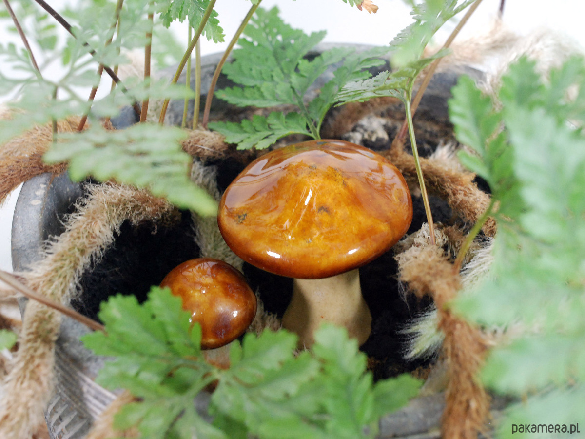 2 ceramiczne grzybki - ozdoba na półkę, do doniczki