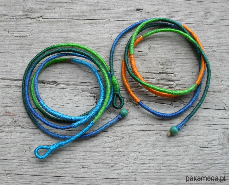 2 cienkie naszyjniki sznurkowe w wybranej kolorystyce z zapięciem ze stali chirurgicznej w złotym kolorze.