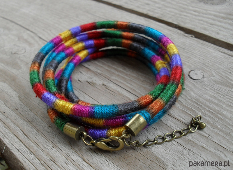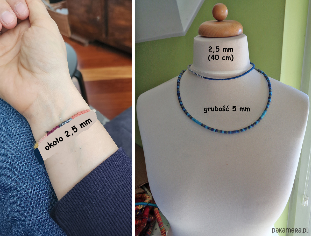 grubość sznurka około 2,5 mm, długość wraz z zapięciem około 50 cm.