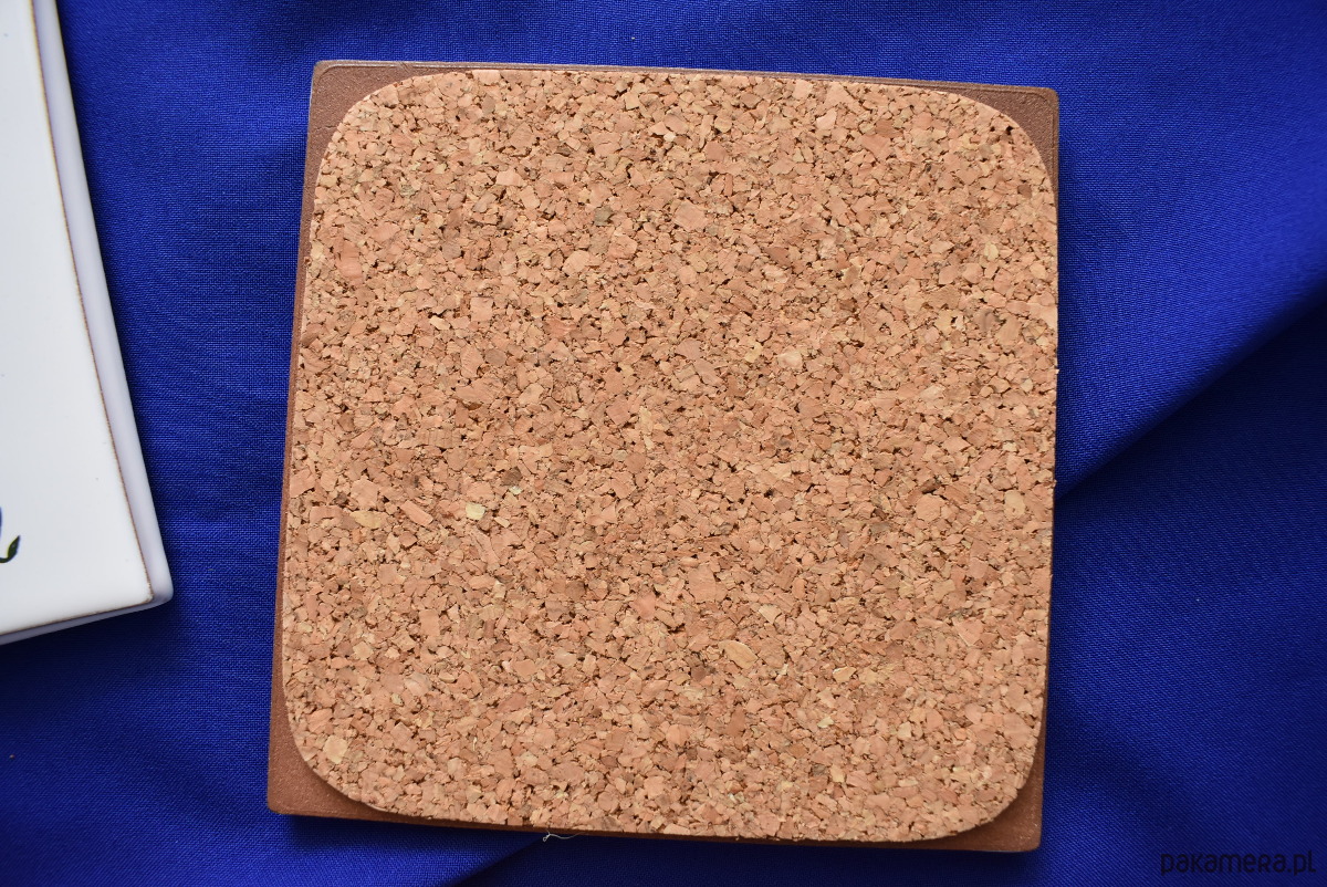 Kafle są podklejone korkowymi podkładkami i idealnie nadają się pod gorące naczynia na stół np. miski, talerze z gorącymi daniami.