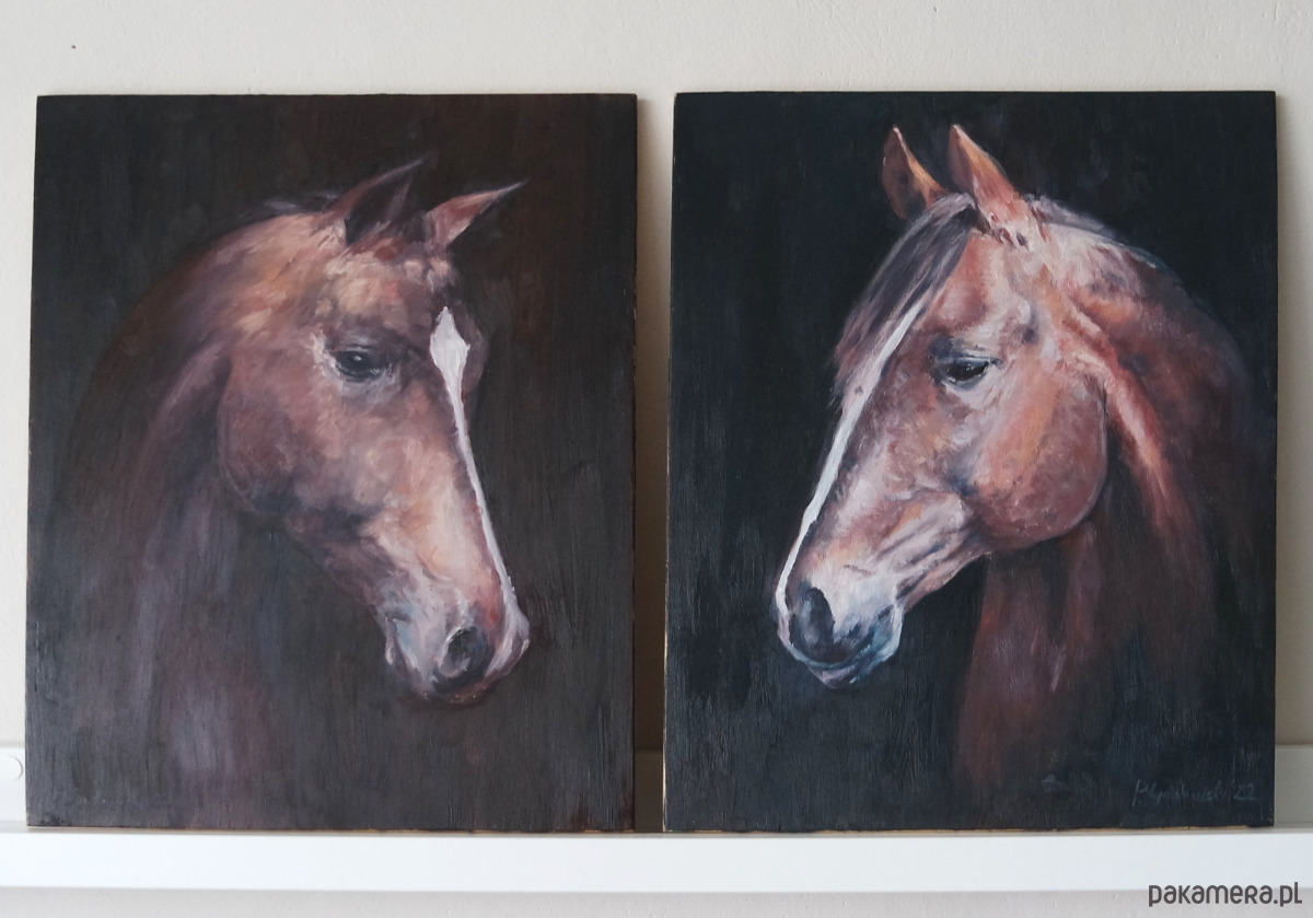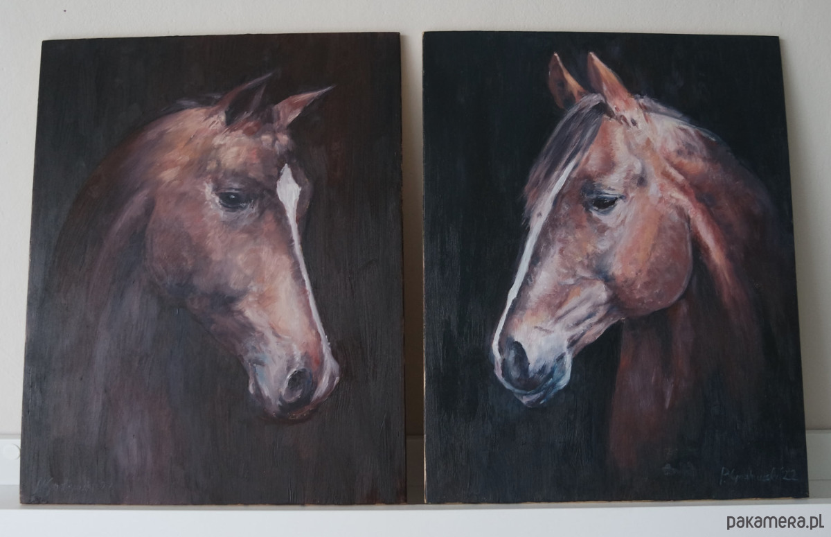 2 obrazy - Konie - olej na desce