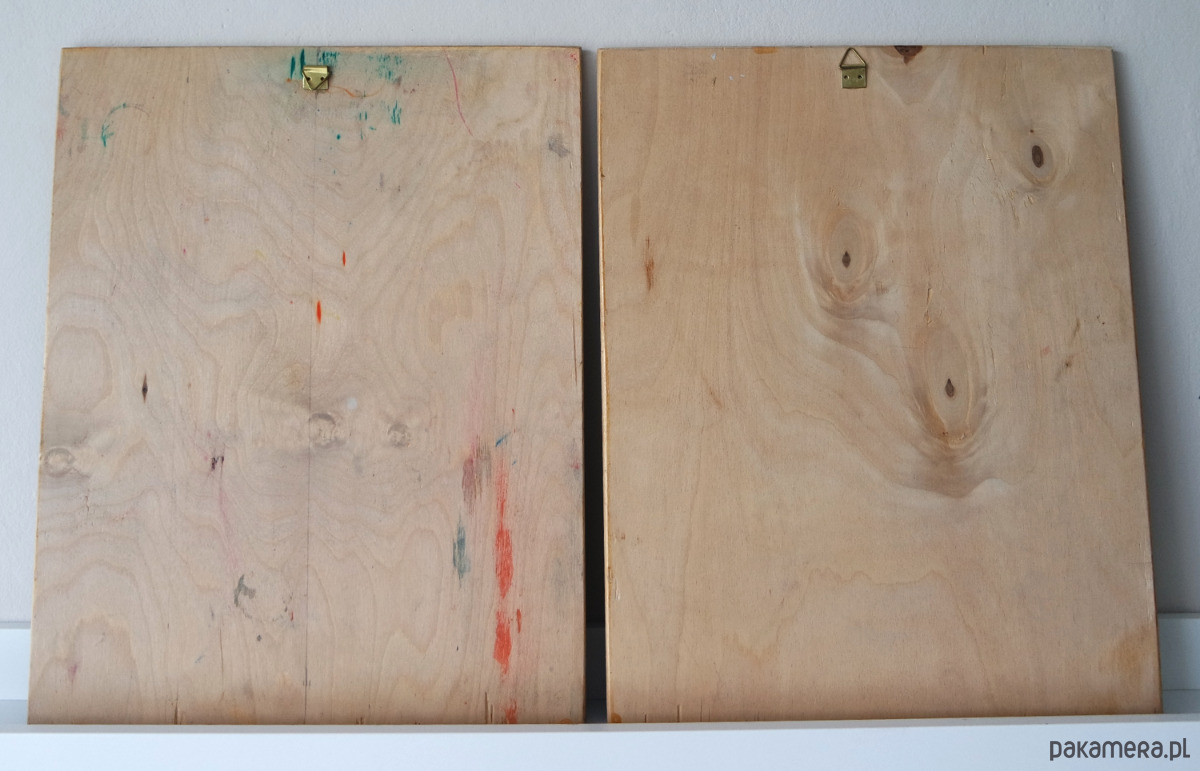 Zestaw 2 obrazów malowanych farbami olejnymi na desce z odzysku (gruba sklejka).
