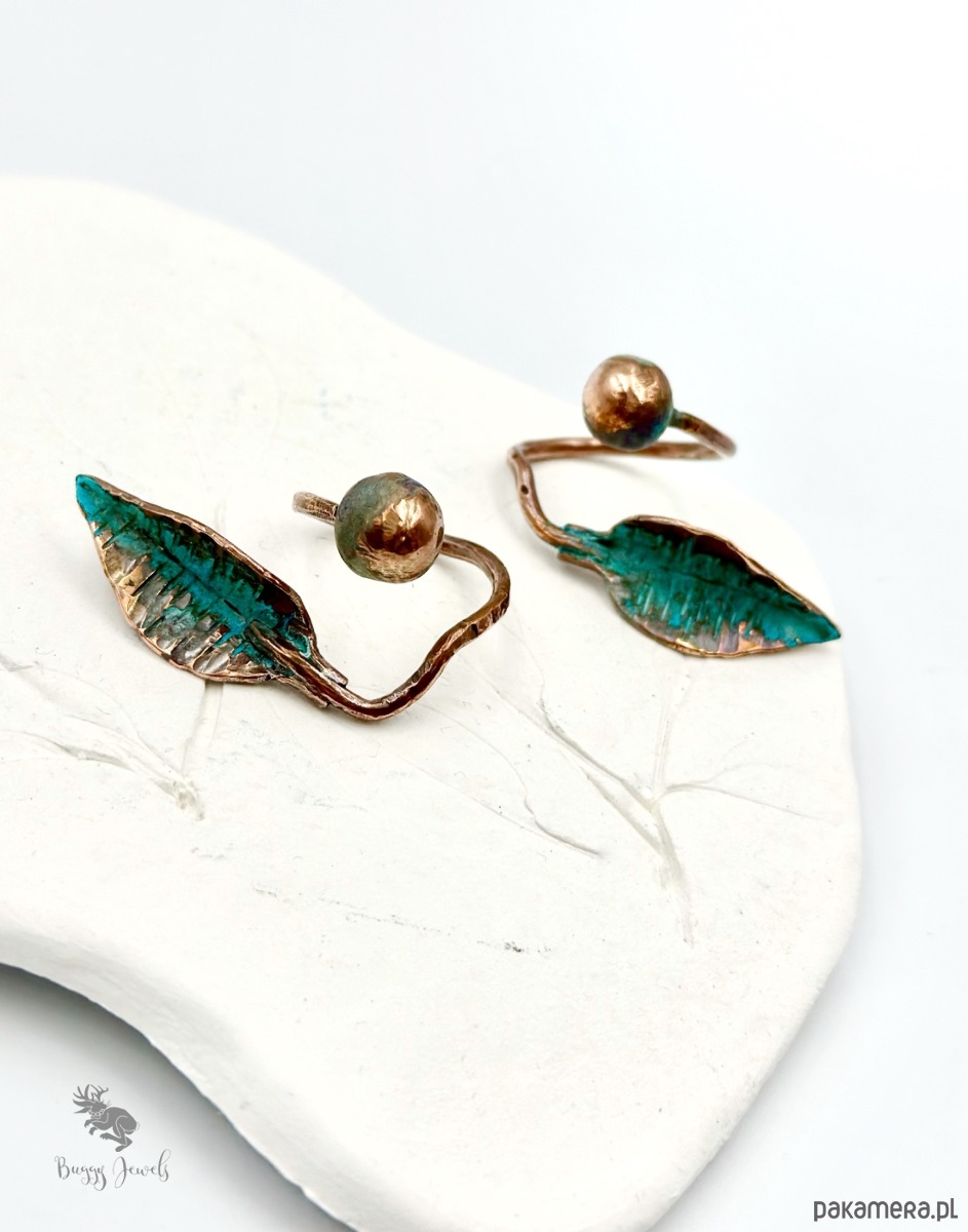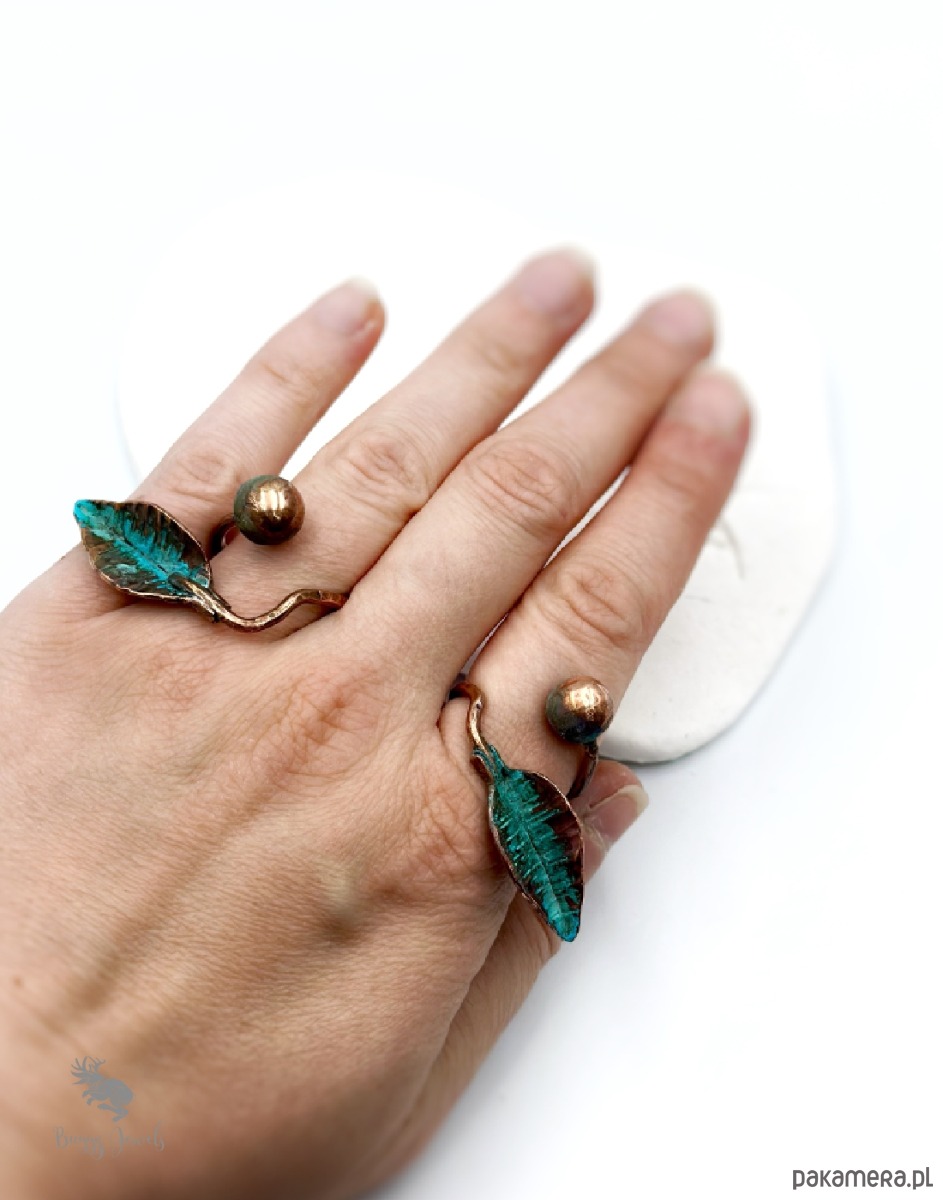2 Pierścionki "Tajemniczy Ogród" z Liśćmi i Kuleczkami