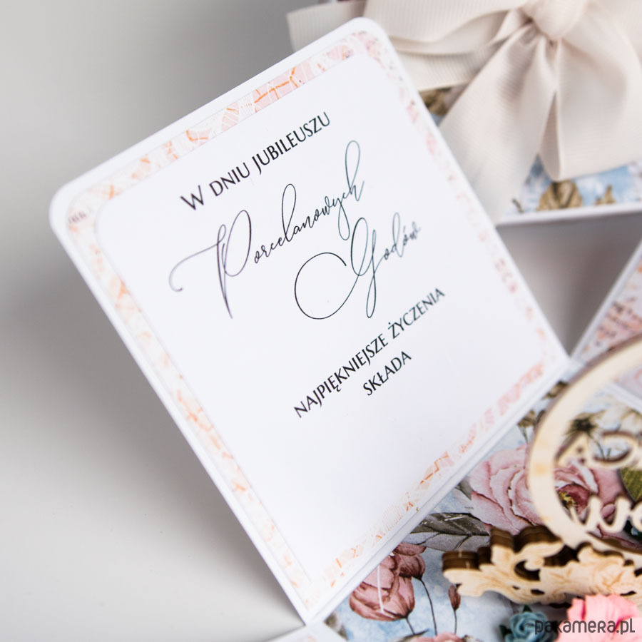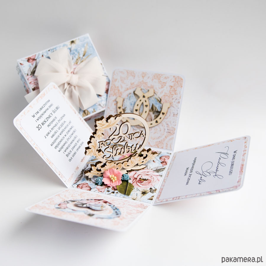 20 rocznica ślubu, porcelanowe gody, exploding box, kartka 3d