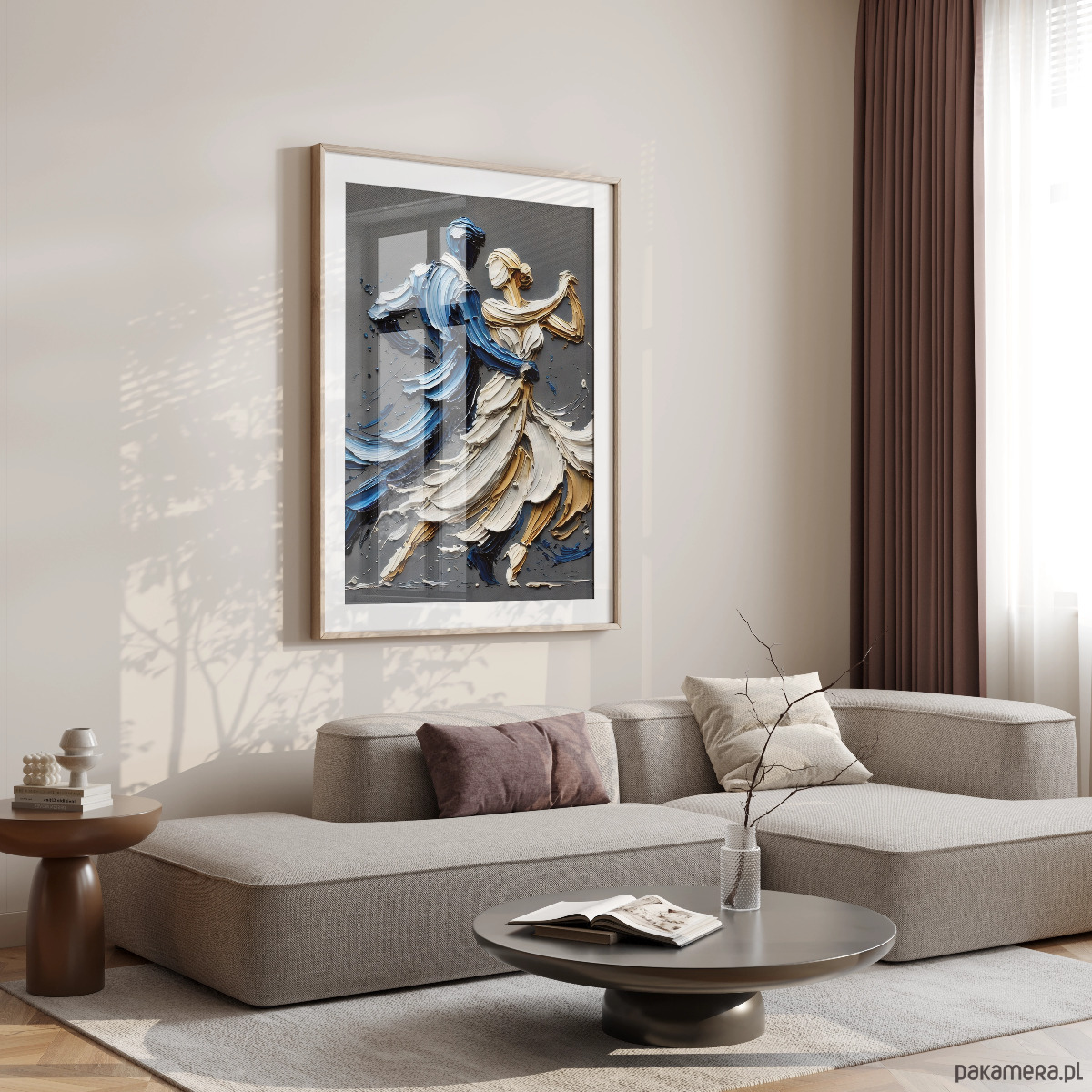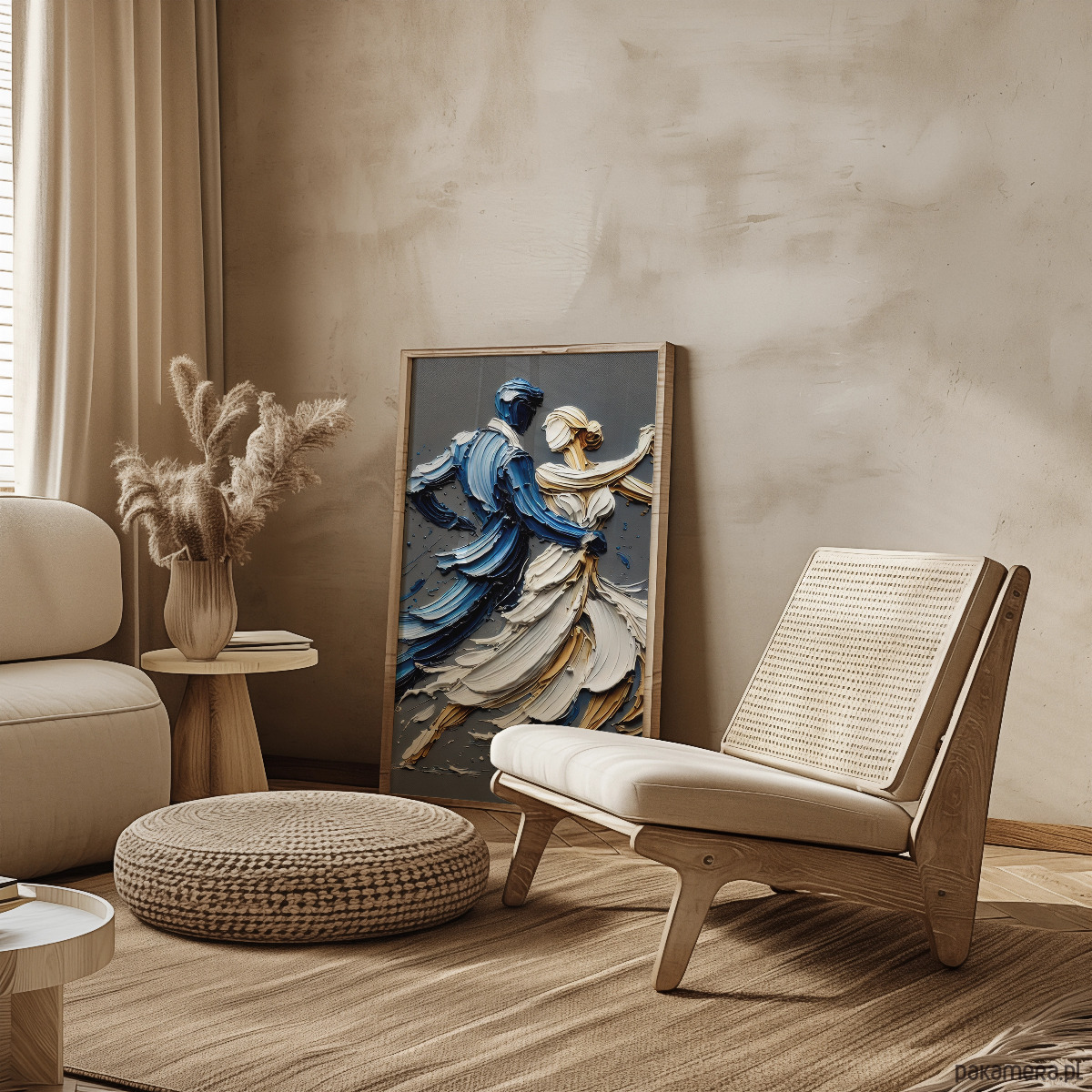 To nie tylko dekoracja ścienna, ale także opowieść o emocjach, bliskości i pięknie ruchu. Idealny do salonu, sypialni czy biura – wprowadzi atmosferę elegancji i subtelnej ekspresji.