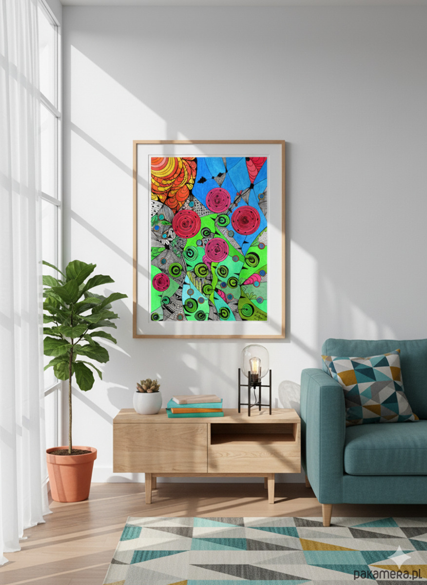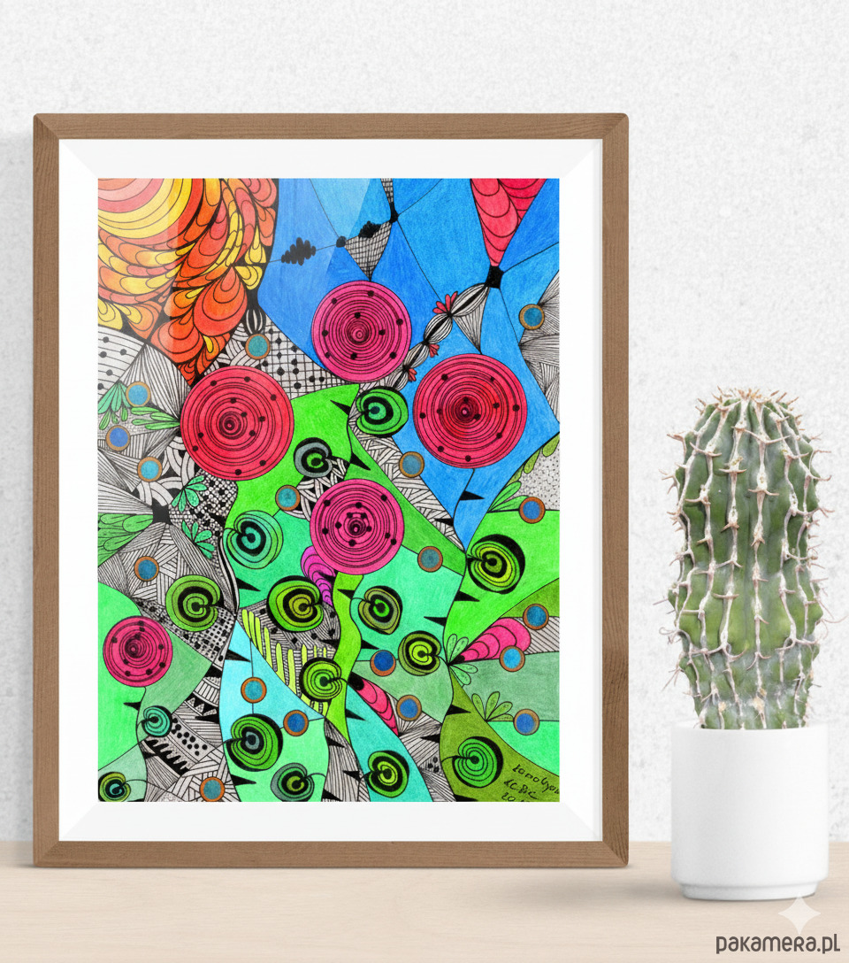 Wydruk autorskiego rysunku na satynowym papierze o gramaturze 200g/m2 - sprzedawany bez ramki - rysunki w ramkach na zdjęciach to wizualizacje.