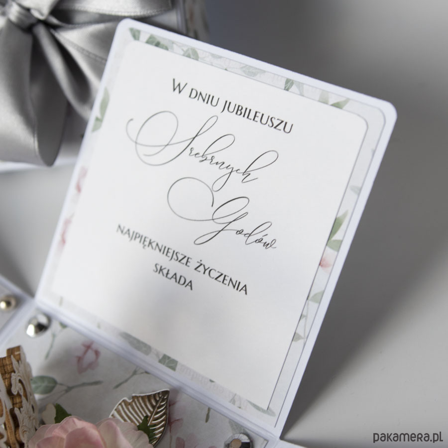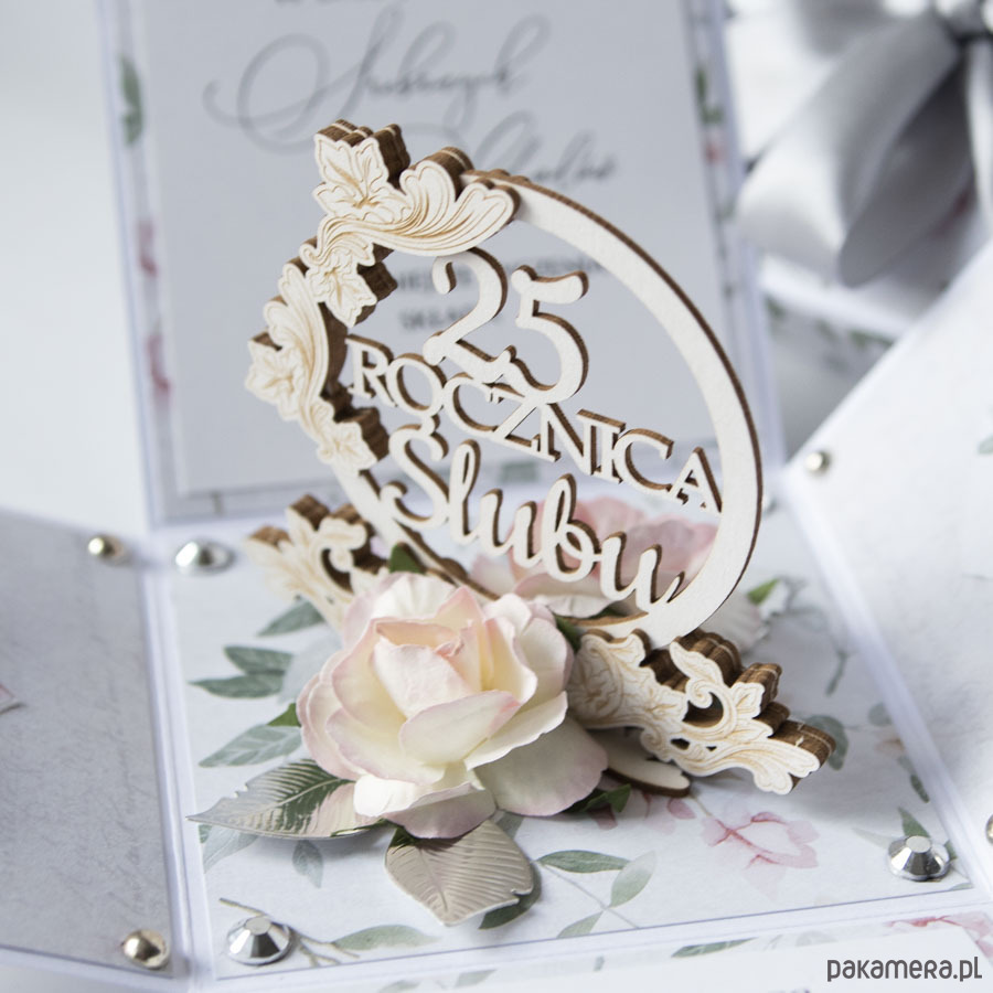 25 rocznica ślubu, srebrne gody, exploding box, kartka 3d