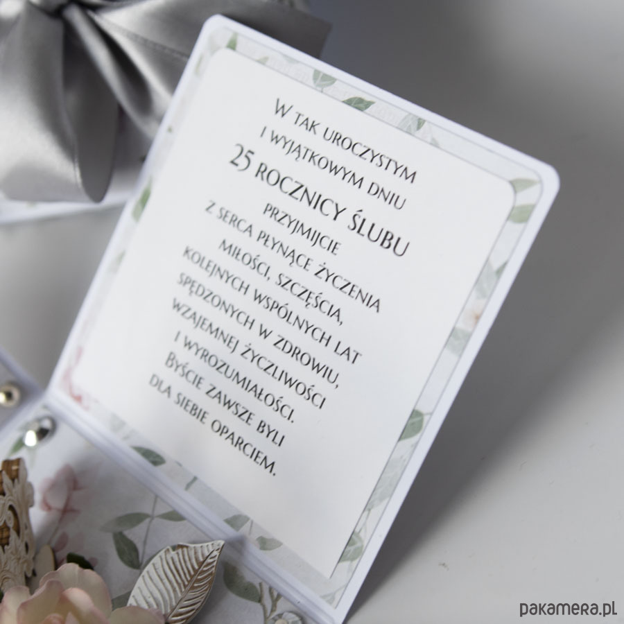 Ręcznie robiona kartka z okazji 25 rocznicy ślubu w formie rozkładanego pudełeczka.