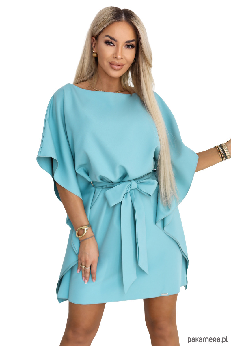 287-40 SOFIA Sukienka motyl z wiązaniem w pasie - pastelowy turkus