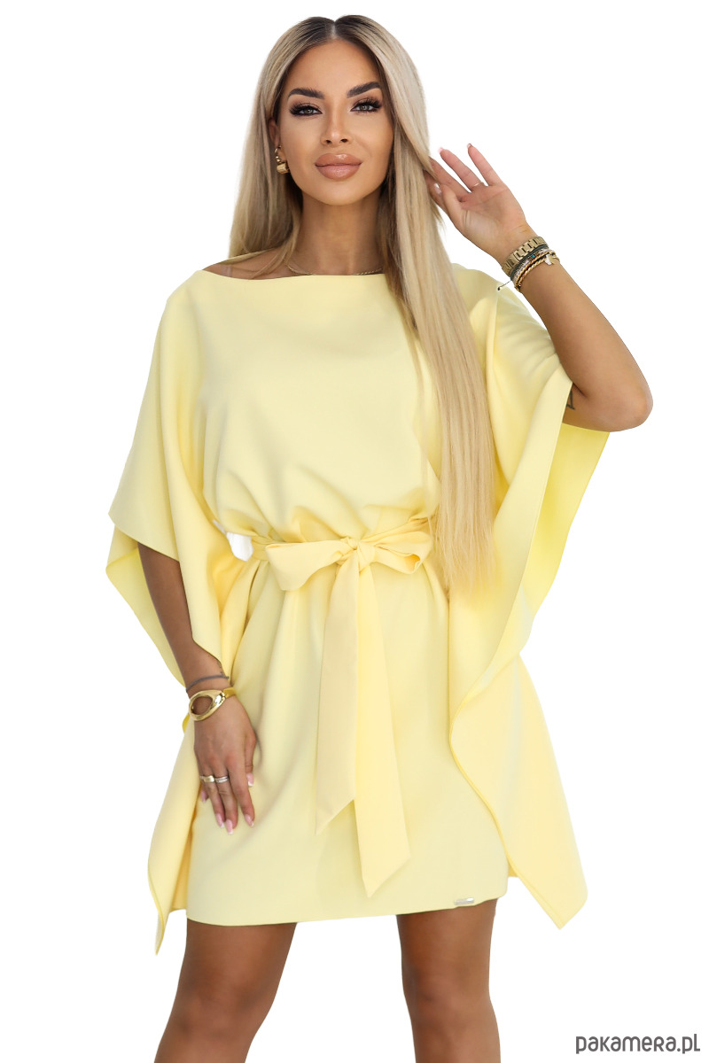 287-41 SOFIA Sukienka motyl z wiązaniem w pasie - pastelowy żółty