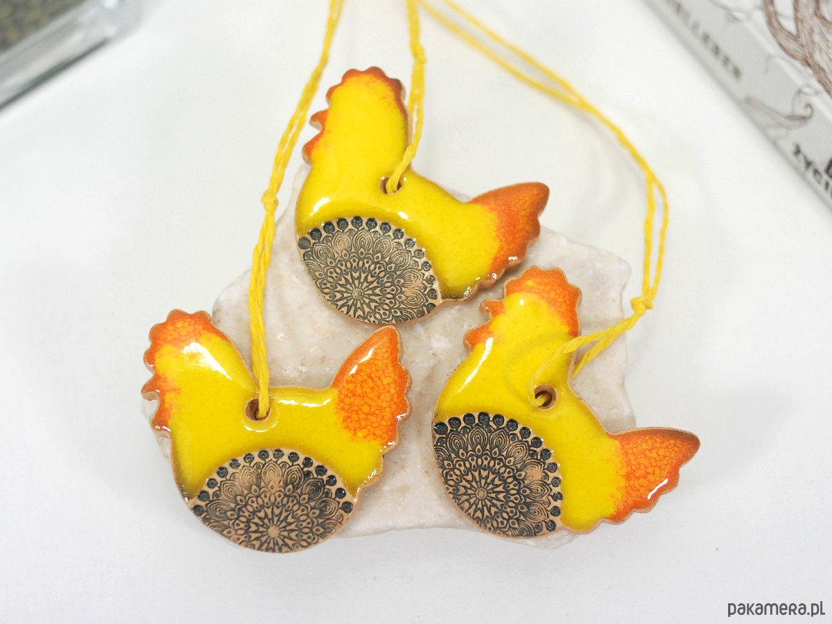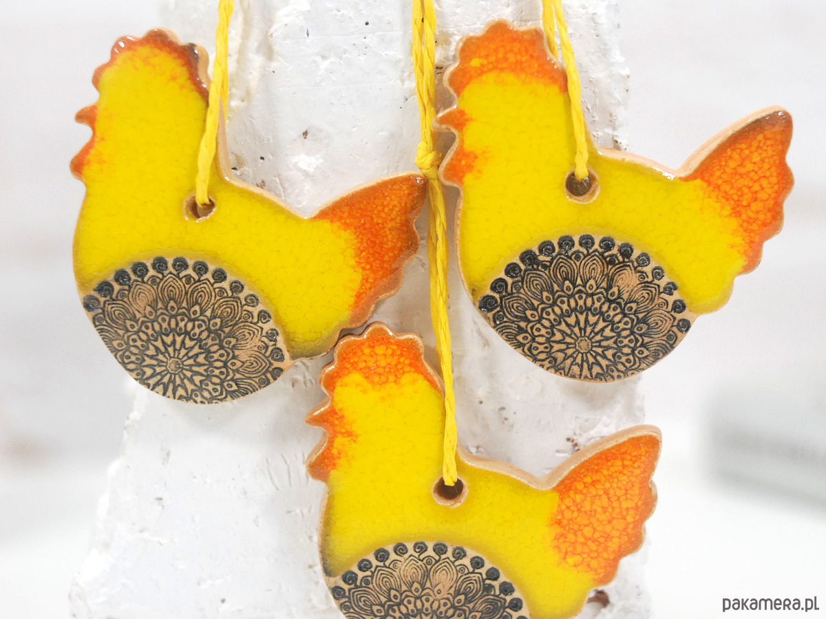 3 ceramiczne ozdoby wielkanocne - kurki