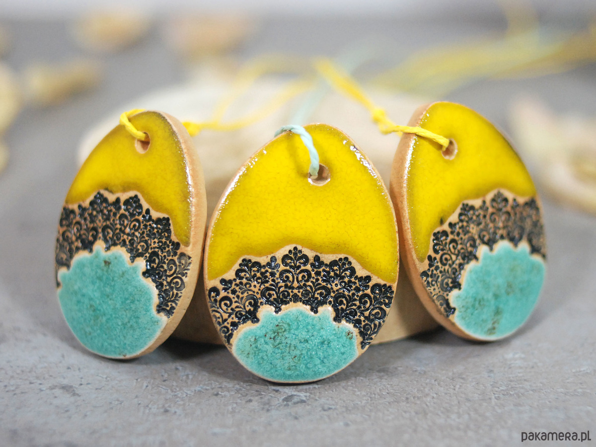 3 Ceramiczne pisanki wielkanocne - ozdoby wiszące