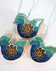 Zestaw zawiera 3 ręcznie robione i malowane ceramiczne ptaszki.