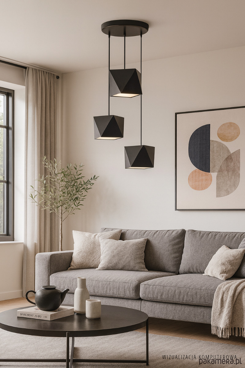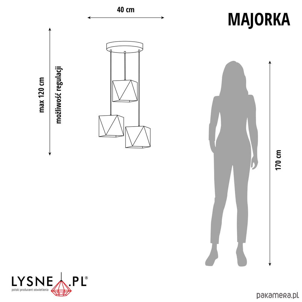 Lampa wisząca MAJORKA to świetna alternatywa dla klasycznych żyrandoli. Znakomicie sprawdzi się w roli oświetlenia głównego, a jednocześnie stanie się szykownym elementem dekoracyjnym każdego nowoczesnego wnętrza. Trzy abażury w kształcie diamentów mocowane na wybranej wysokości, sprawiają, że lampa jest uniwersalna i pasuje do pomieszczeń o różnych wysokościach. Dowolny wybór kolorystyki umożliwia dopasowanie do indywidualnych potrzeb i kolorystyki wnętrza.