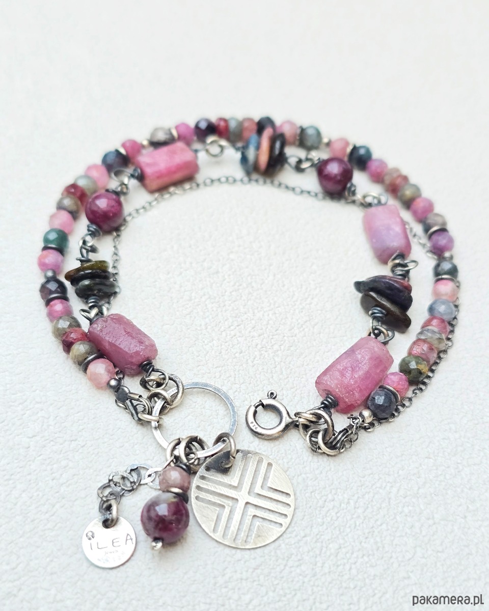 3 Rzędowa Bransoletka Geometryczne Turmaliny