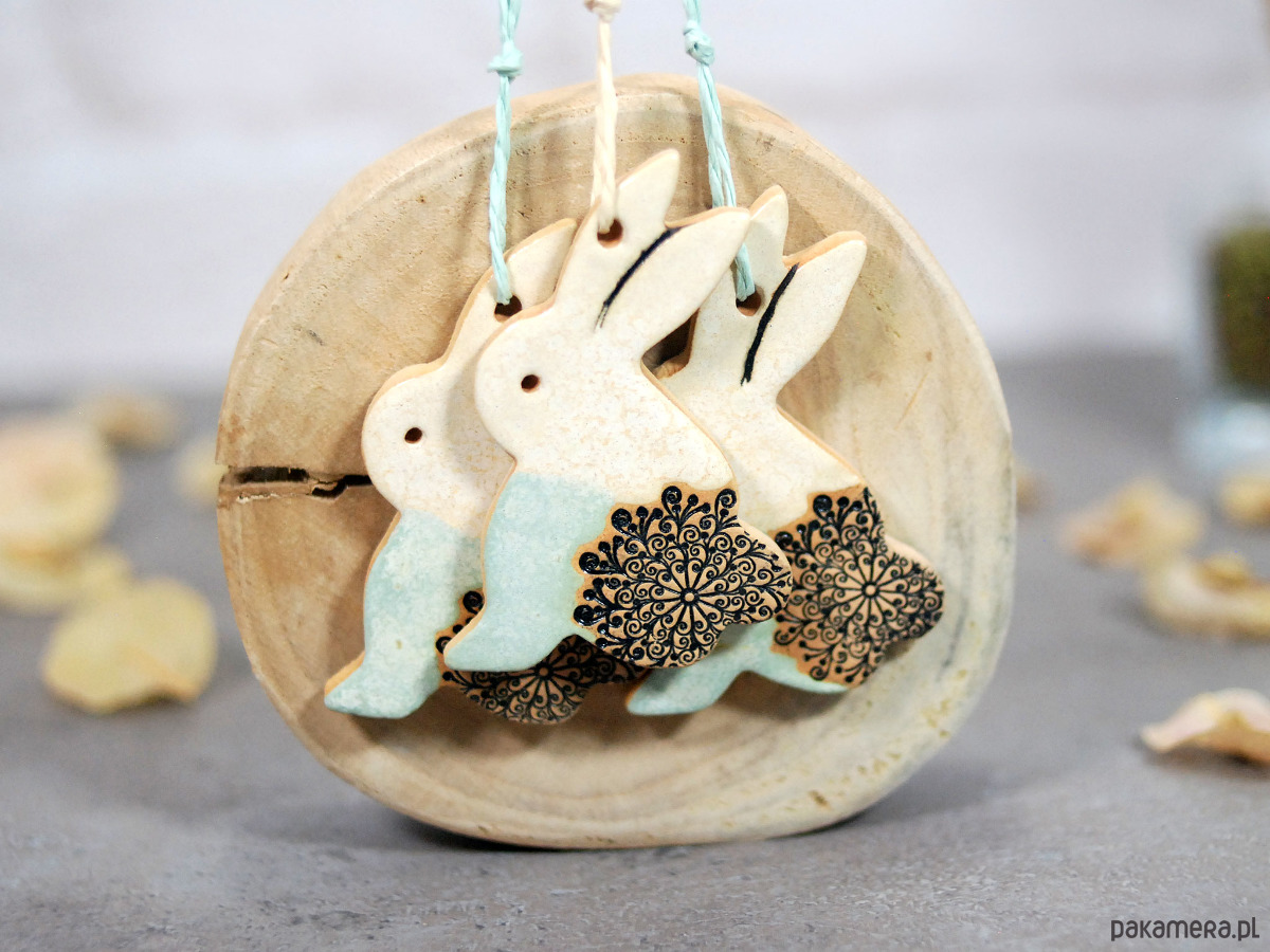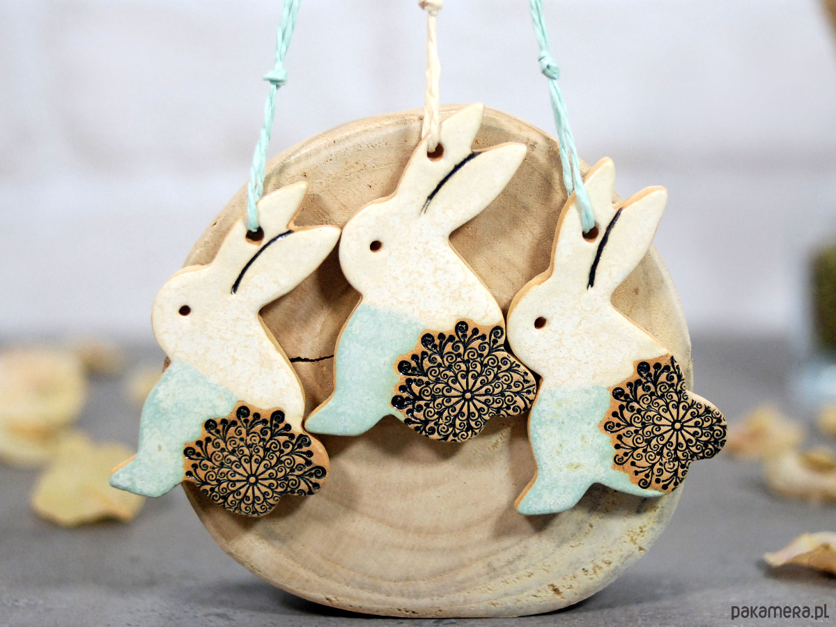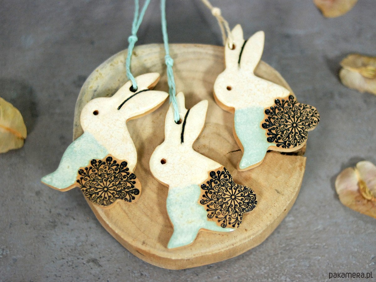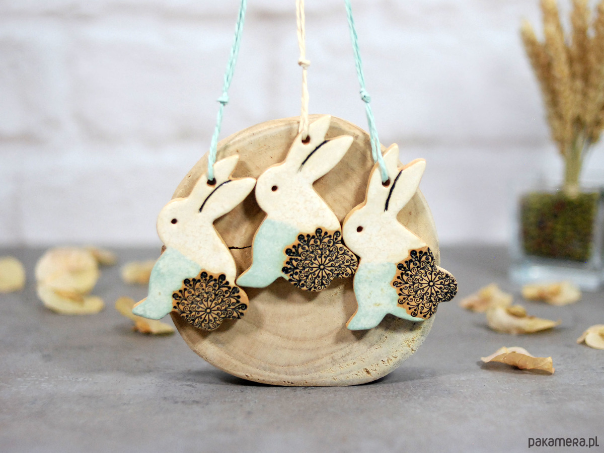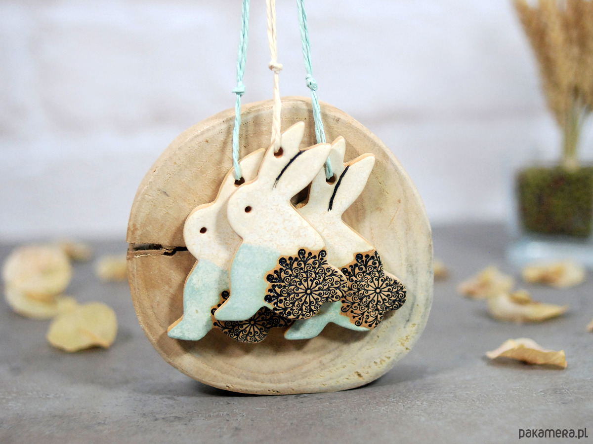 3 Wielkanocne zające - ceramiczne ozdoby wiszące