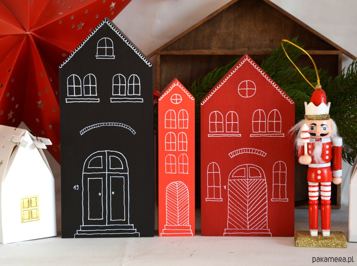 Świąteczne miasteczko w miniaturze - 3 urocze, drewniane domki, ręcznie malowane, każdy w swoim unikalnym stylu: