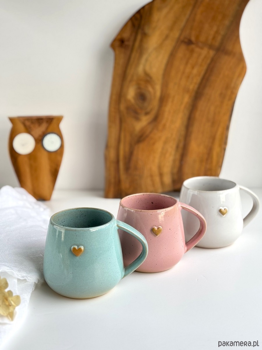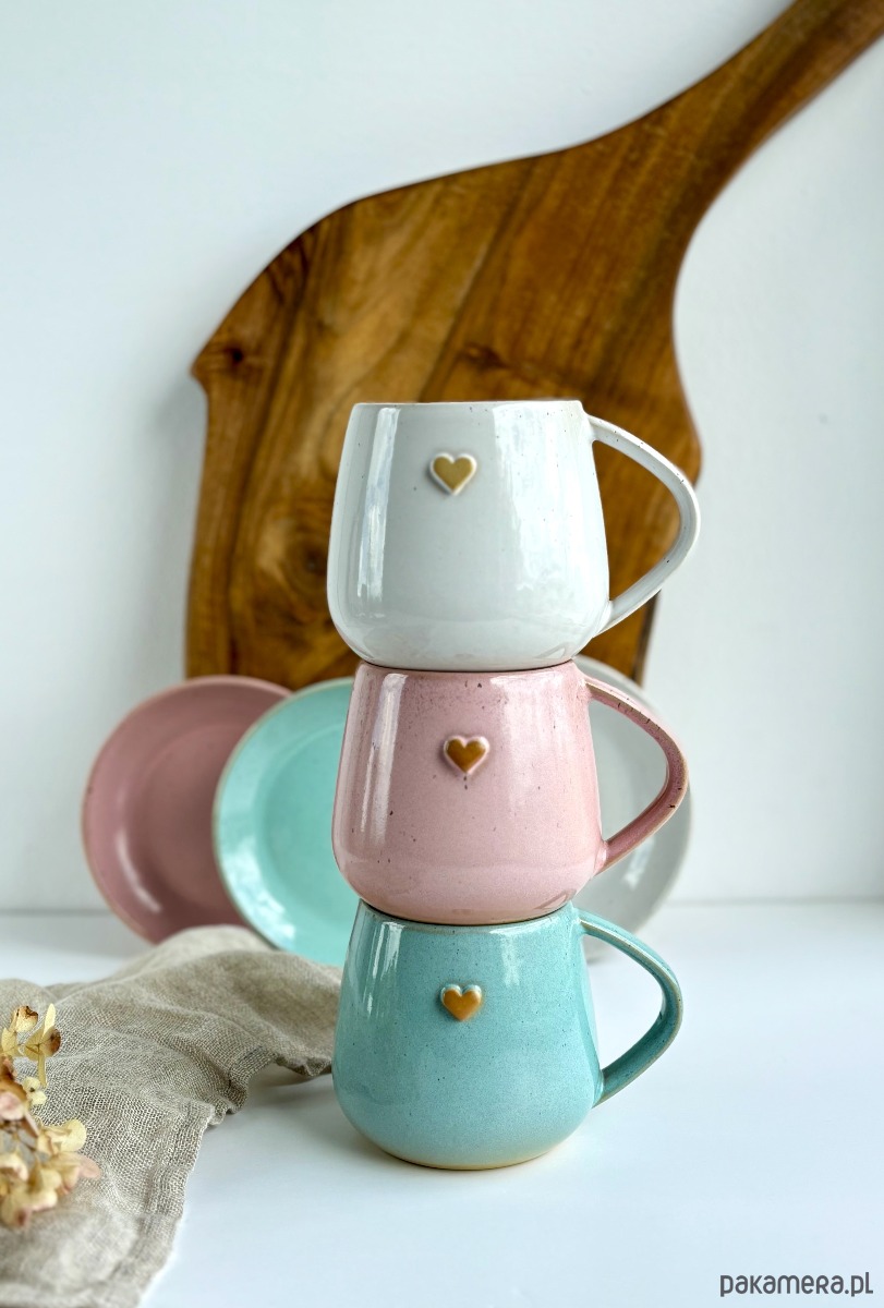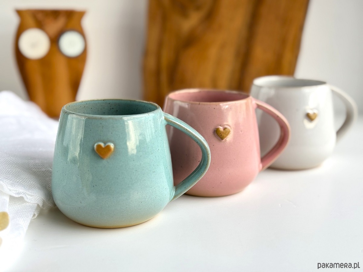 Zestaw 3 kolorowych kubków z sercem to ceramika, która tworzy nastrój - w kuchni, na stole i w sercu. Idealna dla osób, które cenią rękodzieło i niepowtarzalność.