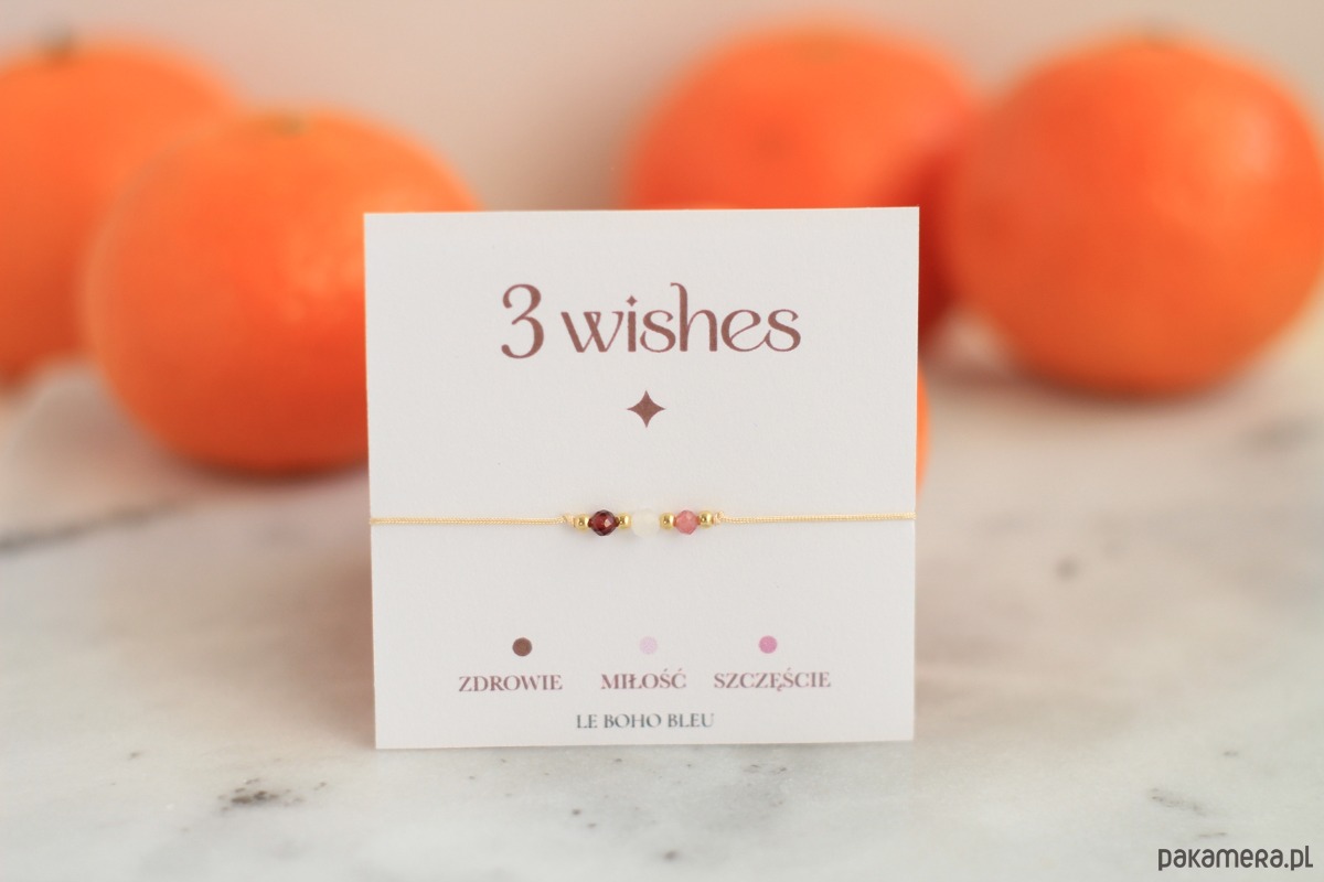 Delikatna bransoletka z trzema wybranymi życzeniami pod postacią kamieni naturalnych.