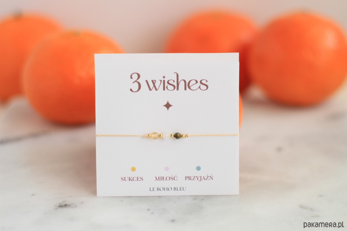 Delikatna bransoletka z trzema wybranymi życzeniami pod postacią kamieni naturalnych.