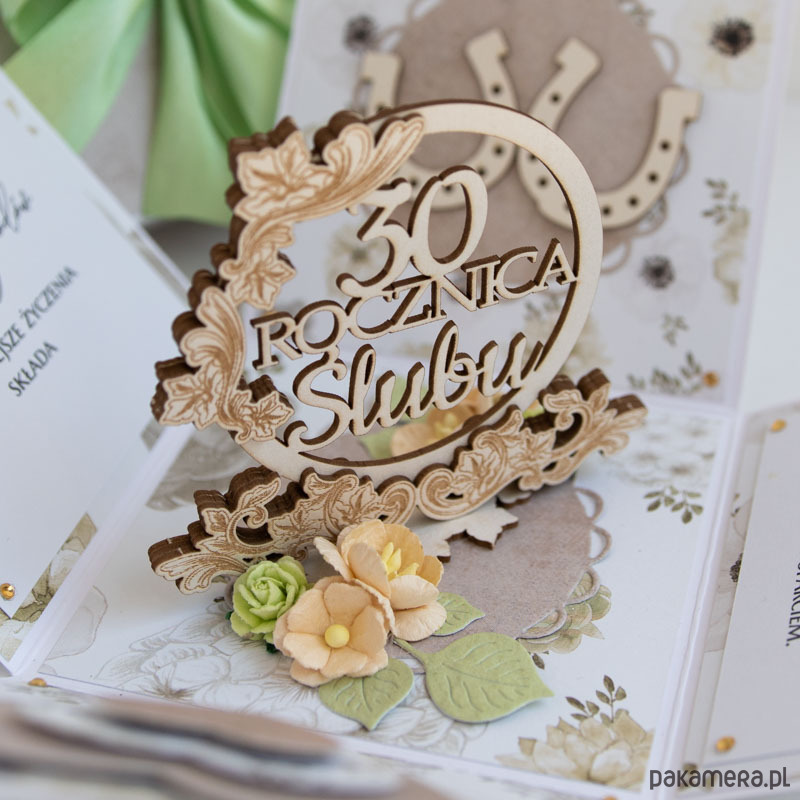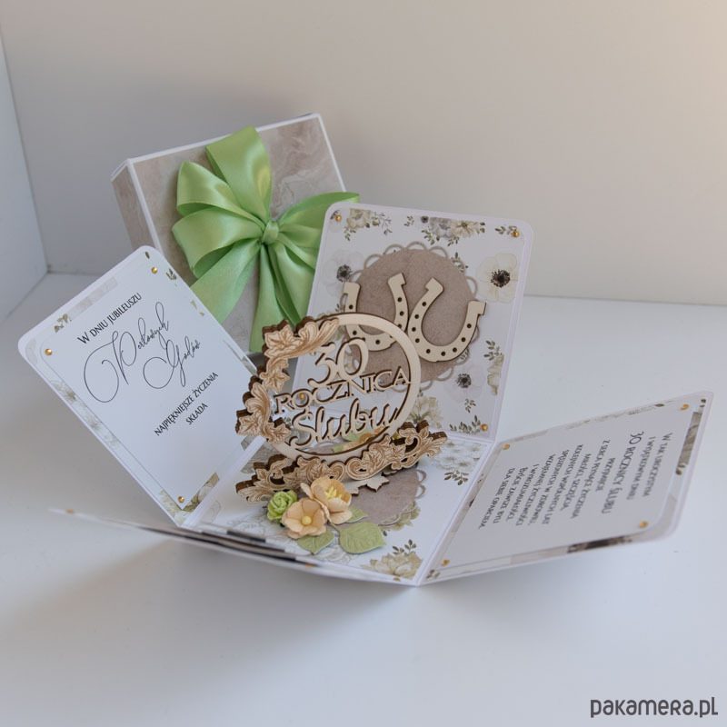 Ręcznie robiona kartka z okazji 30 rocznicy ślubu w formie rozkładanego pudełeczka.
